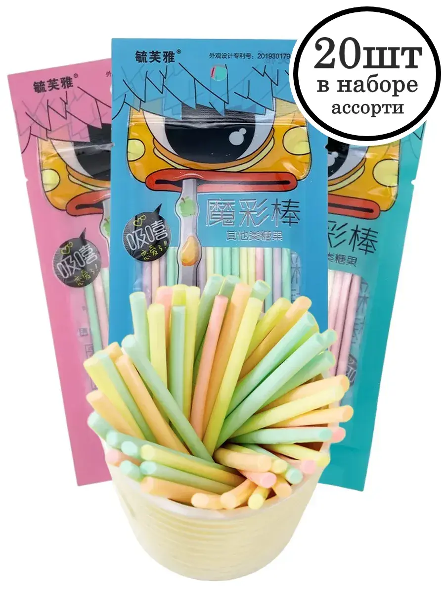 Представь: ты открываешь яркий пакетик, и изнутри вылетает маленький, но уверенный звонкий смех – это сладкая трубочка приглашает тебя в свою страну радуги и вкуса! Удивительные йогуртовые конфеты, что-то, что вы точно не ожидали встретить! Нежные пастельные оттенки радуют глаз, а бархатистая, чуть жевательная текстура дарит удовольствие. Сочный фруктовый вкус встречается с нежным йогуртом — и начинается настоящая вкусовая магия. Поделись с друзьями или оставь все себе (мы никому не скажем!). В наборе 20 пачек ассорти.
