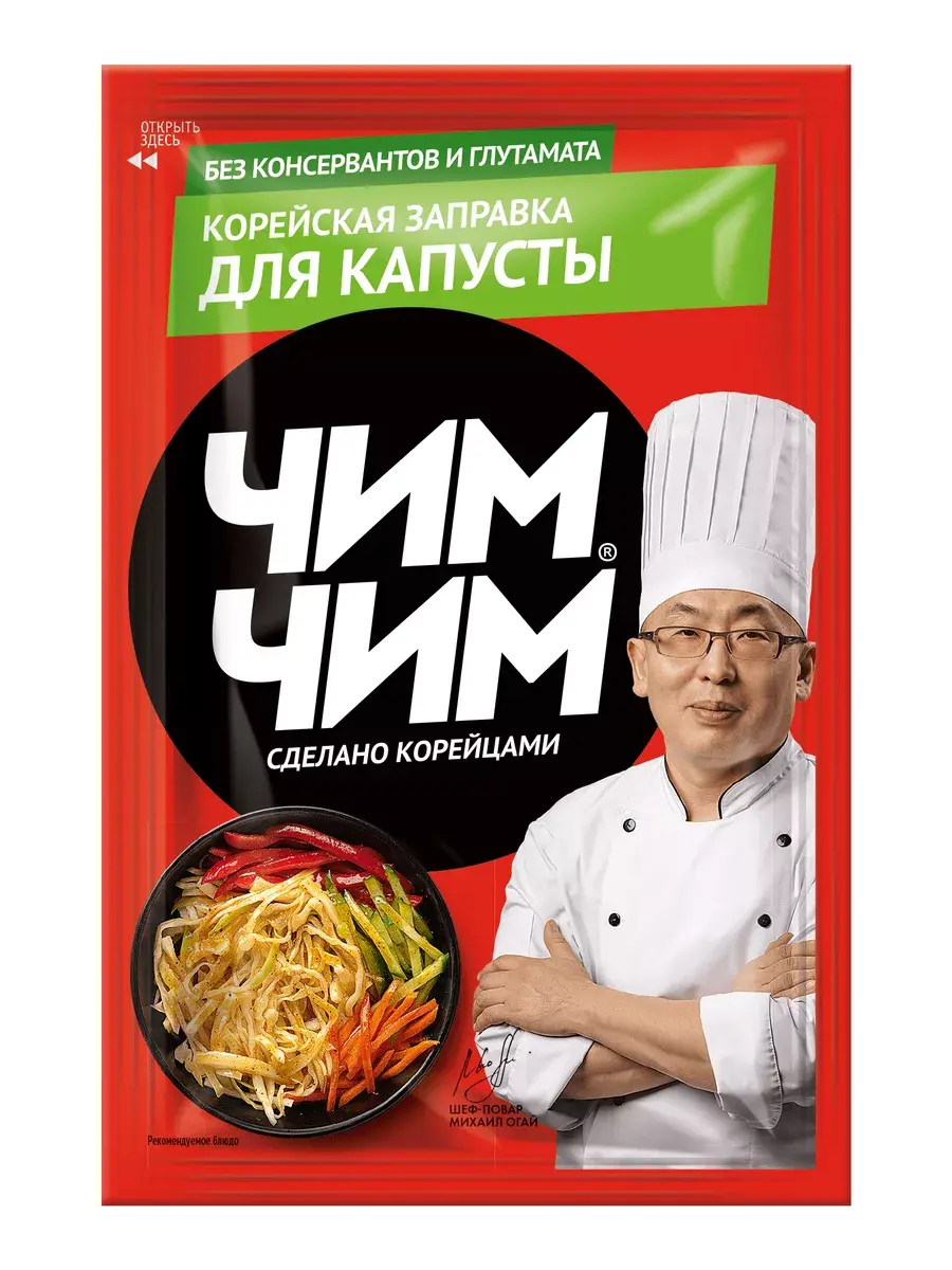 Корейская заправка для капусты линейки ЧИМ ЧИМ включает в себя все, что необходимо для приготовления настоящих корейских салатов - специи, приправы, растительное масло и уксус в гармонично подобранных пропорциях. Не содержит консервантов. Классическая заправка с характерным для азиатских блюд сочетанием специй и приправ, с помощью которой можно быстро и просто приготовить хрустящую капусту по-корейски. Всё что вам нужно – следовать простому рецепту на упаковке. Одного пакета заправки хватит на приготовление 600 г салата.