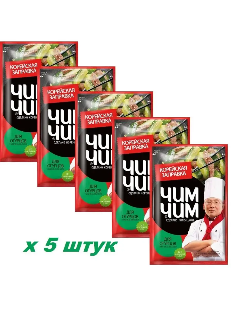 Корейская заправка Чим-Чим позволит быстро и легко приготовить салат . Продукт произведен на основе растительных масел, содержит уксус. Одного пакета заправки достаточно для 600 г салата. На обратной стороне упаковки - рецепт приготовления салата.