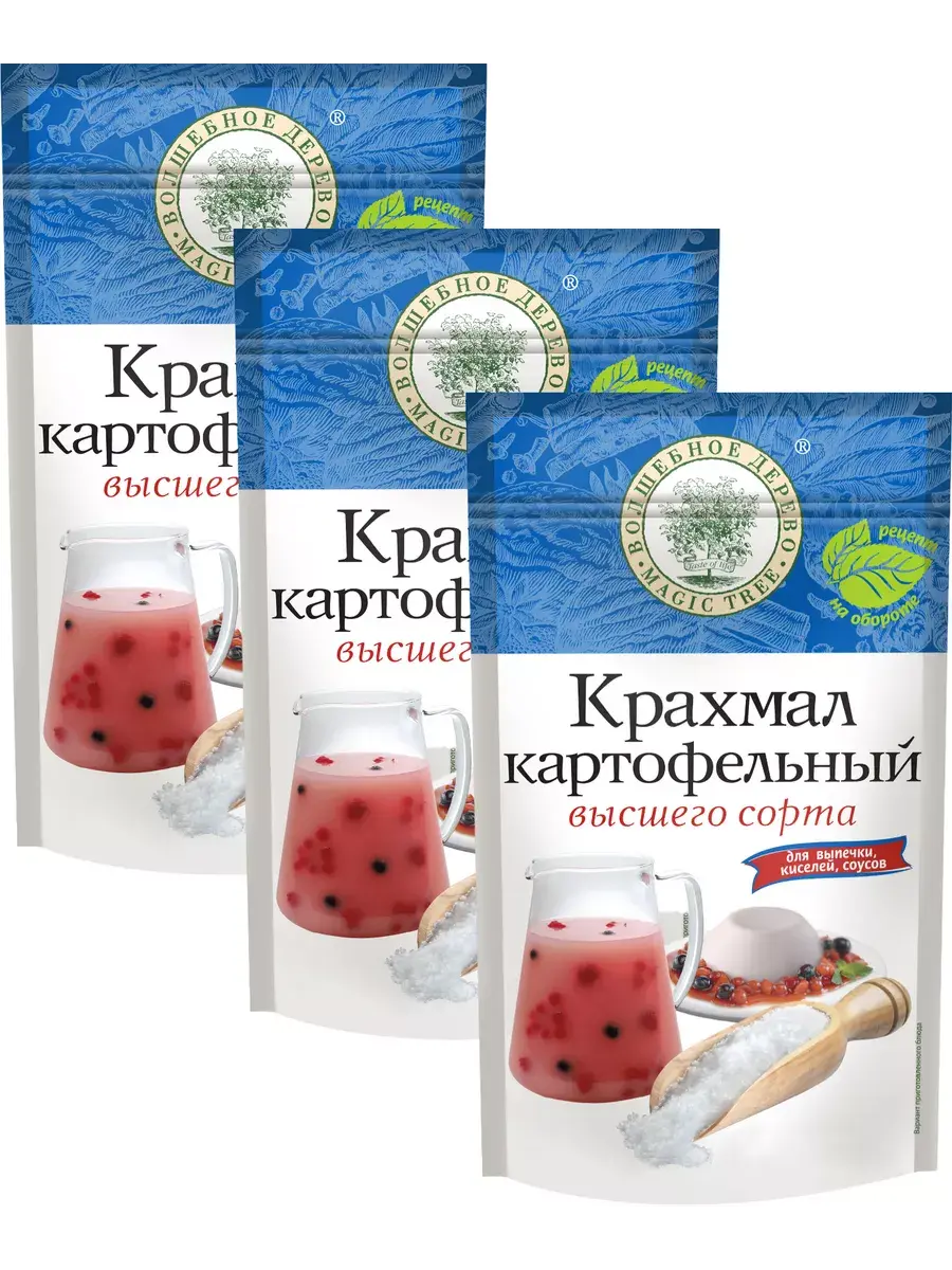 Представляем вашему вниманию картофельный крахмал высшего сорта – продукт, который должен быть в арсенале каждого повара и кондитера. Крахмал "Волшебное Дерево" отличается высочайшим качеством и широким спектром применения, обеспечивая превосходные результаты в самых разнообразных блюдах и продуктах. Идеально подходит для приготовления соусов, кремов, супов и подливок. Его высокая клейкость обеспечивает отличную консистенцию и текстуру, делая ваши кулинарные шедевры еще более аппетитными. Картофельный крахмал используется в выпечке, кондитерских изделиях, мясных и рыбных блюдах. Он отлично подходит для загущения, панировки и придания продуктам необходимой структуры. В комплекте 3 пачки по 200г.