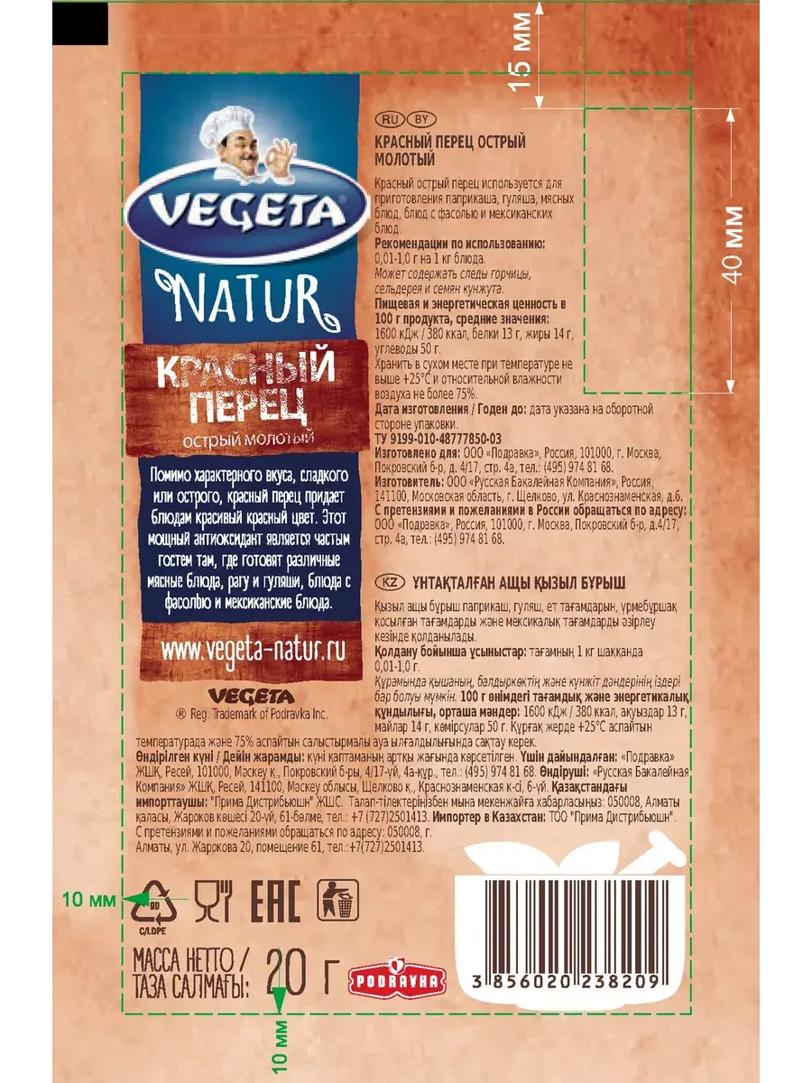 Красный острый перец получают путем сушки острых перцев, а затем измельчают в порошок. Исследования показали, что это растение выращивали в далекой Мексике еще 6000 лет назад, а европейская кухня обогатилась этой пряностью в конце 15 века благодаря Христофору Колумбу. Помимо характерного вкуса, сладкого или острого, красный перец придает блюдам красивый красный цвет. Этот мощный антиоксидант является частым гостем там, где готовят различные мясные блюда, рагу и гуляши, блюда с фасолью и мексиканские блюда. В комплекте 5 пакетиков по 20г.