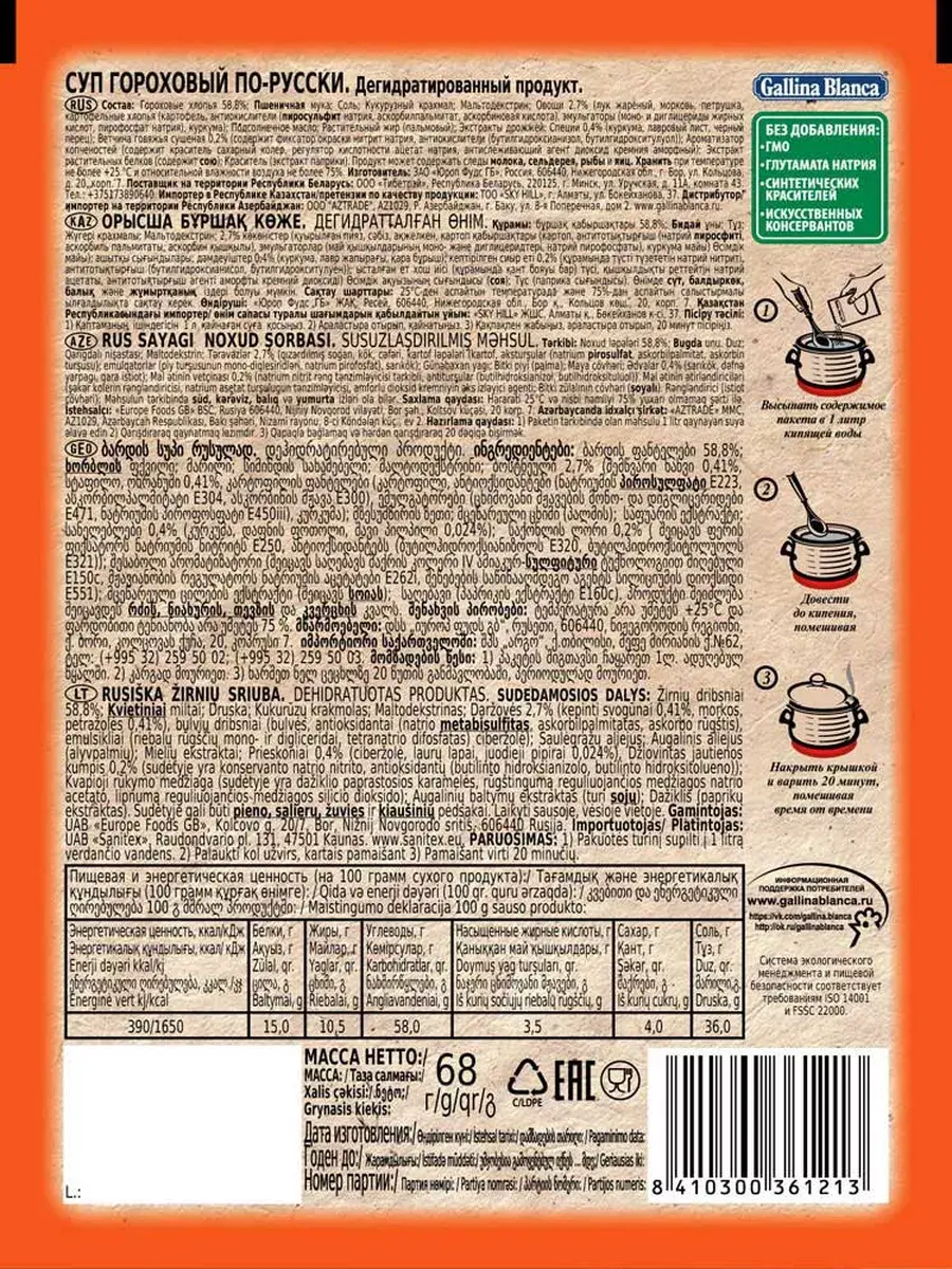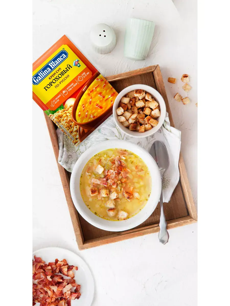 «Три в одном» - именно так можно охарактеризовать гороховый суп: невероятно вкусно, полезно и экономно. Gallina Blanca представляет оригинальный рецепт Горохового супа по-русски, который может стать как полноценным блюдом, так и отличной основой для авторского рецепта. Вкуснейший суп привнесет разнообразие на любой стол и прекрасно дополнит ваш обед.