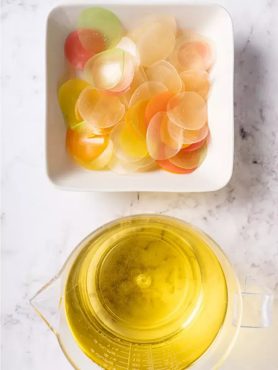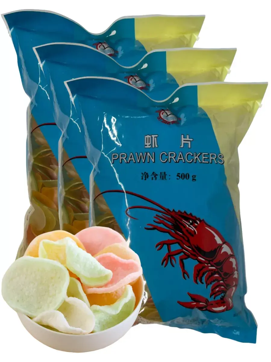Креветочные чипсы для жарки – быстрая хрустящая закуска для приготовления в домашних условиях. Подавать принято с различными соусами. Тонкие и полупрозрачные пластинки станут чипсами только после приготовления в масле или фритюрнице. Готовка не займет много времени: Поместите 2-4 пластинки в горячее масло. Через несколько секунд креветочные чипсы будут готовы. Достаньте готовые чипсы после того, как они увеличатся в размере и всплывут. Чтобы устранить лишнее масло, переложите креветочные чипсы на бумажную салфетку. В комплекте 3 пачки по 500г.