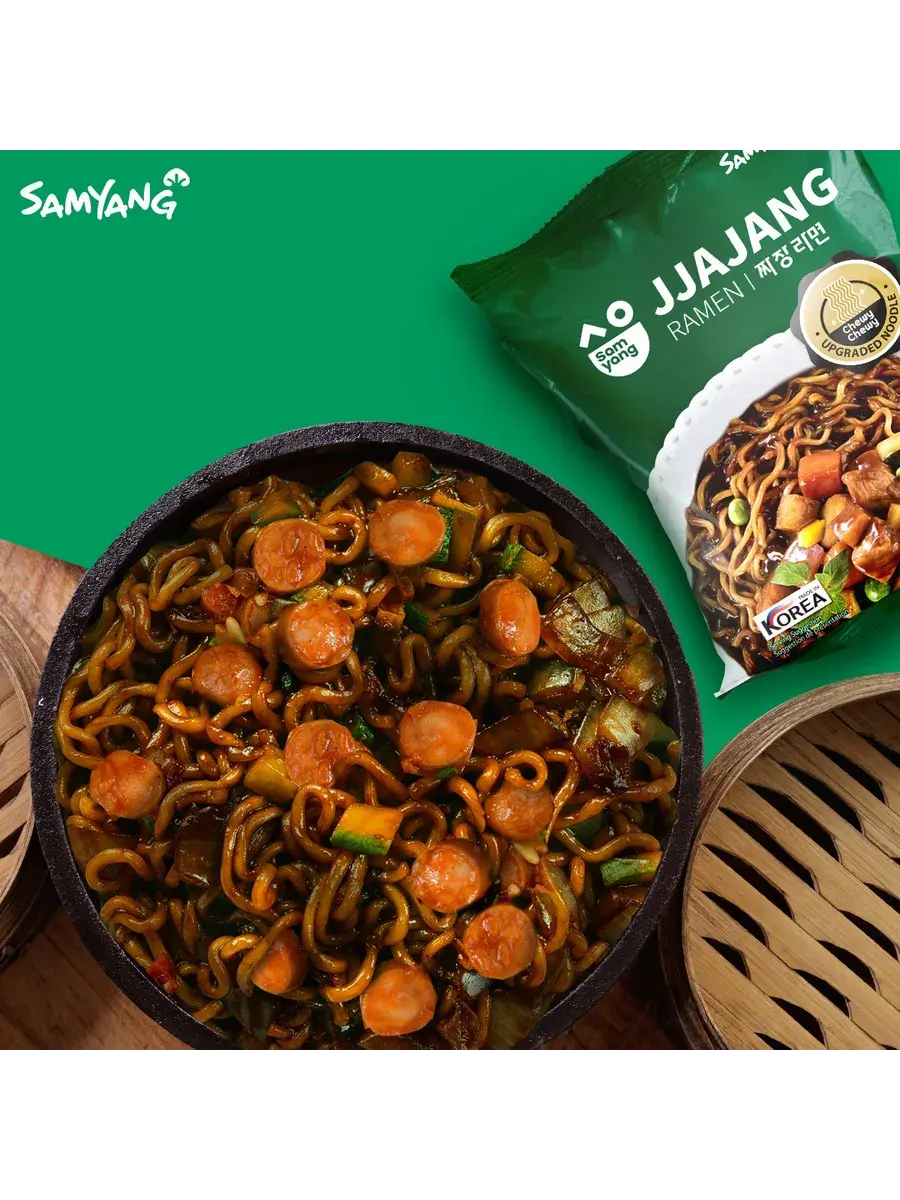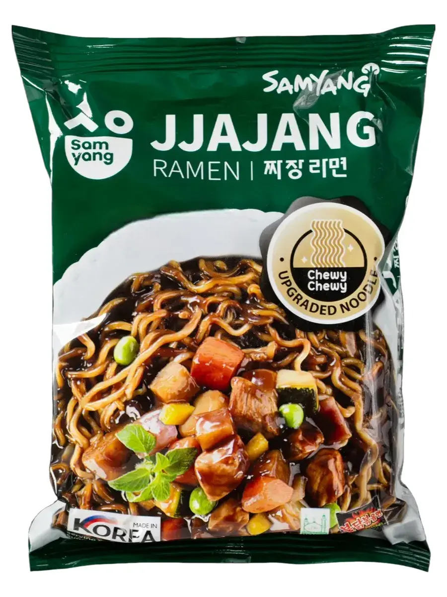 Сытная и аппетитная лапша всегда сможет порадовать абсолютно всех и каждого – и детей, и взрослых! А особенно ценителей корейской кухни и любителей съесть чего-нибудь поострее. Помимо всего этого рамён удобен тем, что его можно приготовить за каких-то пять минут, имея всего несколько ингредиентов под рукой и кипяток! Представляем Вашему вниманию аппетитный рамён чаджанмён! Соус, который готовится на основе чёрных бобов, называется чаджаном. Он имеет сладко-солёный вкус и является ингридиентом для приготовления одного из самых популярных корейских рамёнов — чачжанмён. В упаковке весом 400г 5 порций по 80г.