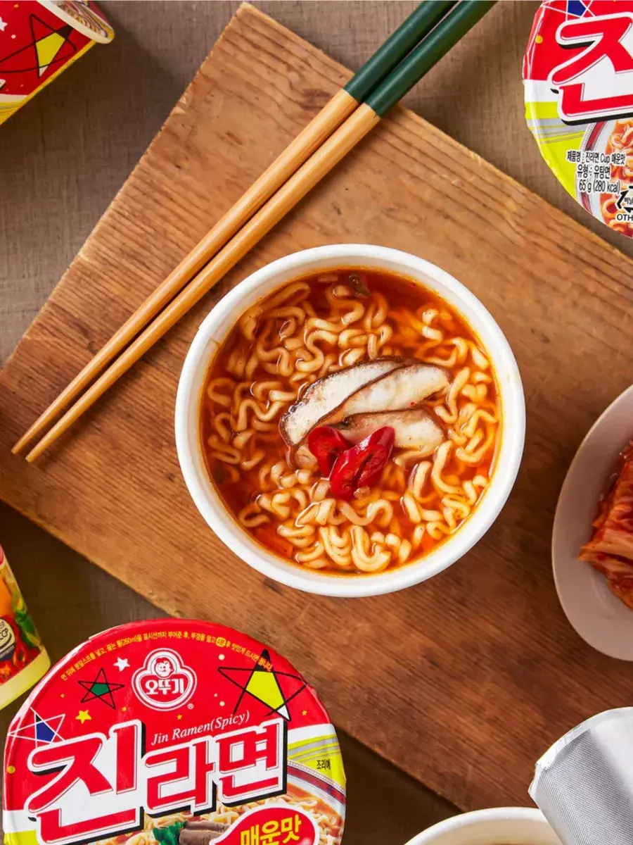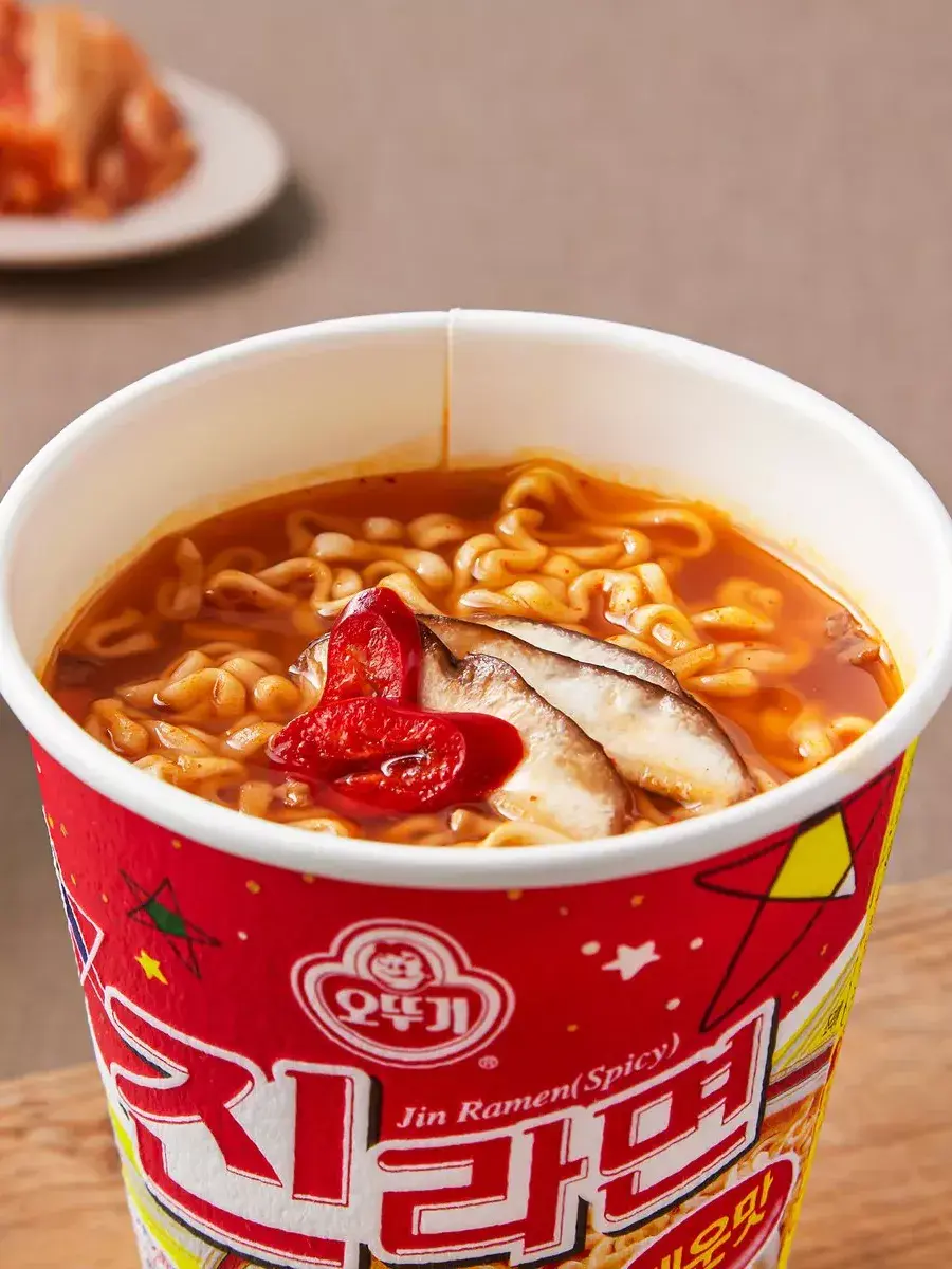 Джин Рамен от Ottogi со вкусом грибов - это острая корейская лапша быстрого приготовления. Суп пряный, ароматный и очень вкусный! Для Джин рамен, в отличие от лапши в пакетиках, не нужна отдельная посуда, и её очень удобно заваривать. Достаточно лишь залить кипятком лапшу и содержимое пакетиков с приправами и подождать несколько минут. Способ приготовления: откройте крышку наполовину, высыпьте приправу на лапшу, залейте кипятком (270мл) до внутренней линии упаковки, закройте крышкой на 3 минуты, хорошо перемешайте. Готово! В комплекте 3 штуки по 65г.