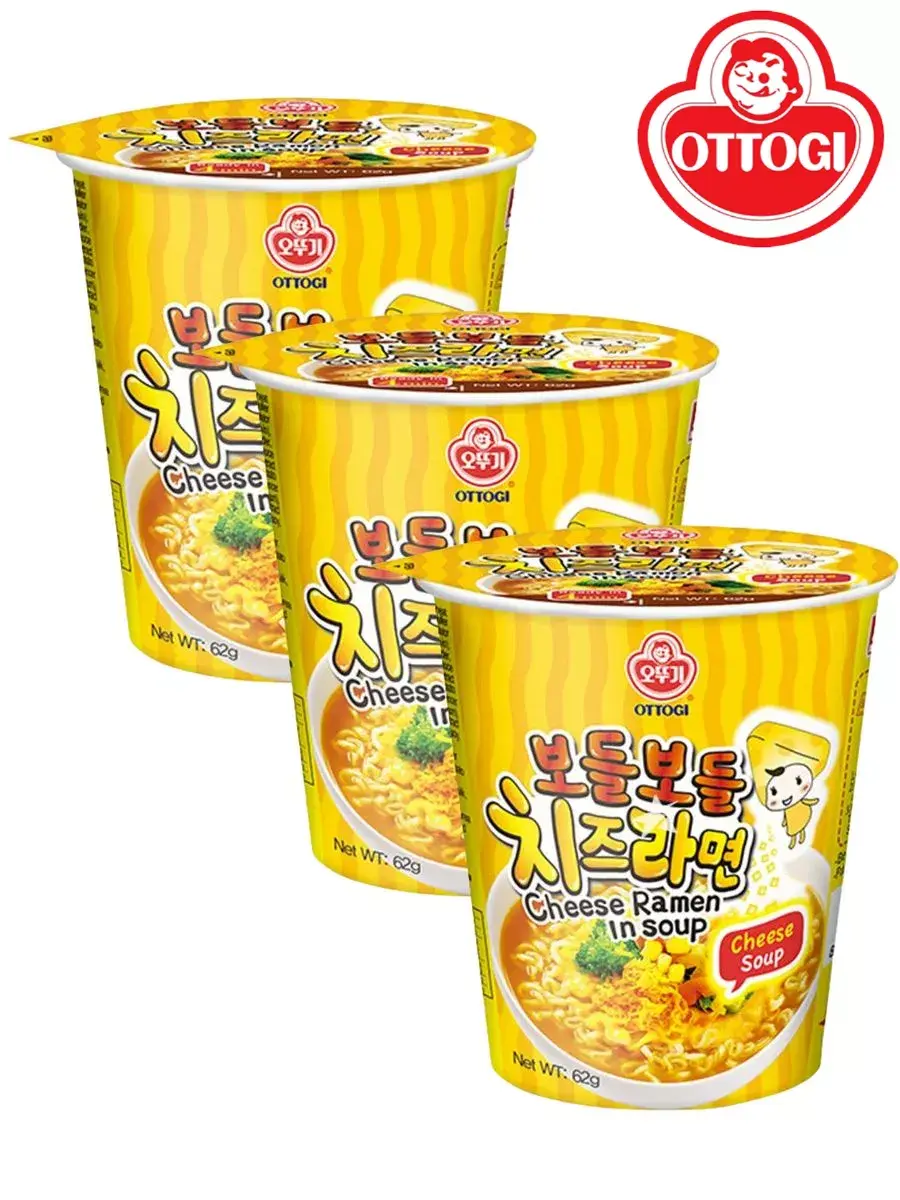 Лапша быстрого приготовления Cheese Ramen от Ottogi - еще один вариант непревзойденного тандема острой и сырной приправ, прекрасно сочетающихся с нежным раменом. Суп достаточно сытный, он быстро утолит чувство голода, а также согреет и наполнит энергией. Упаковку сырного рамена удобно брать с собой в поездки, путешествия, походы, ведь на его приготовление требуется лишь несколько минут. Способ приготовления: добавьте в кастрюльку или сотейник 550 мл. воды (2 и 1/4 стакана), добавьте овощную смесь и доведите до кипения. После этого добавьте лапшу и суповую основу (приправу). Готовьте в течение 4 минут. По вашему вкусу дополнительно можно добавить яйцо, зелень, сыр и т.д. Снимите с огня, добавьте сырную пудру, хорошо перемешайте и наслаждайтесь вкусом настоящего корейского сырного рамена. В комплекте 3 штуки по 62г.