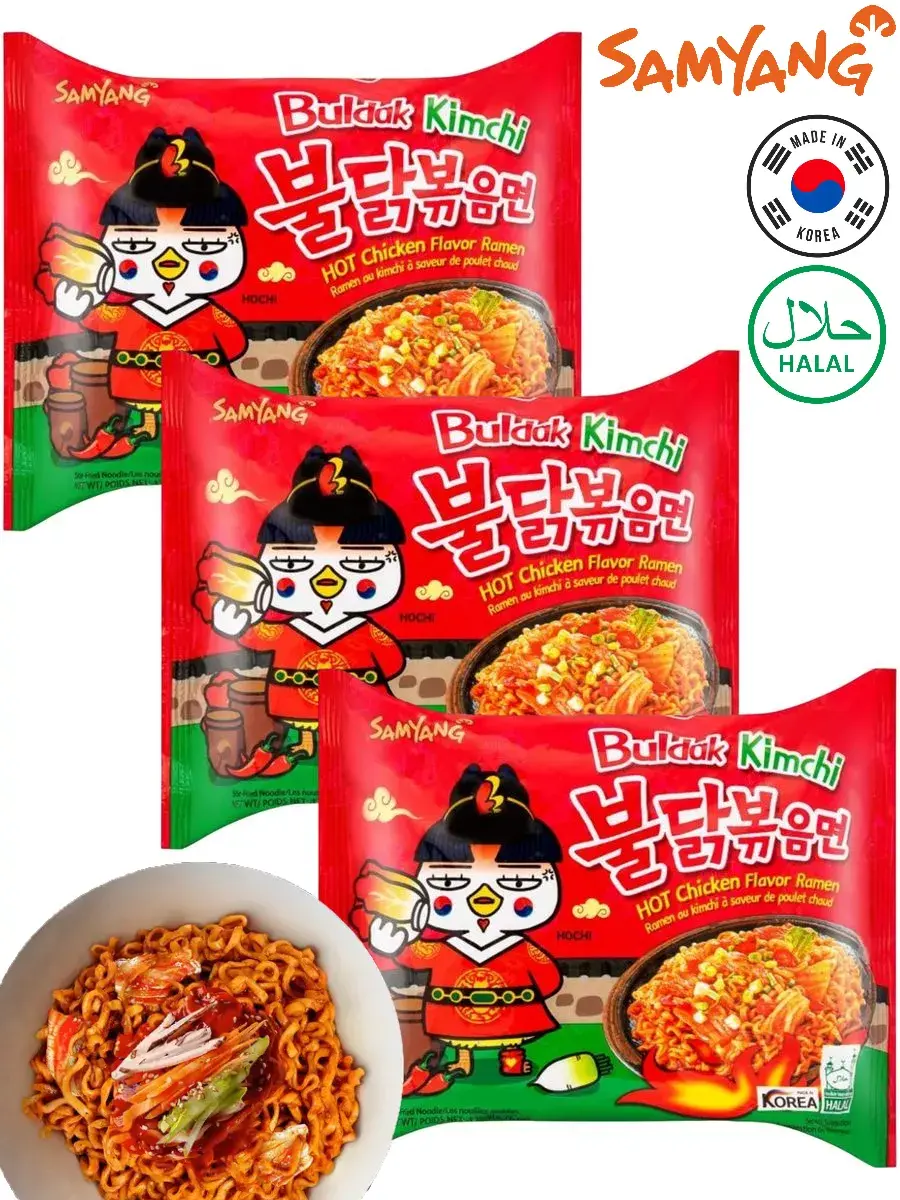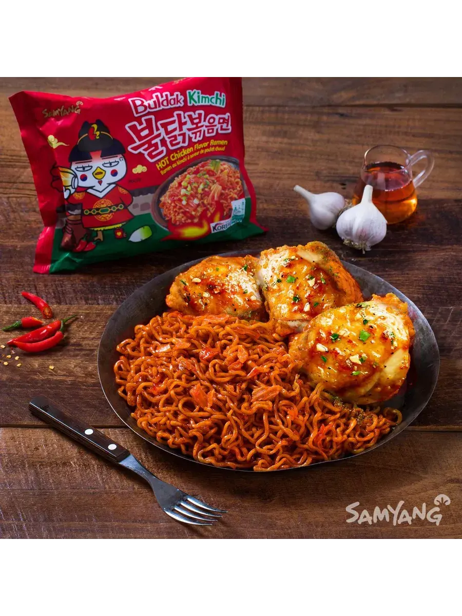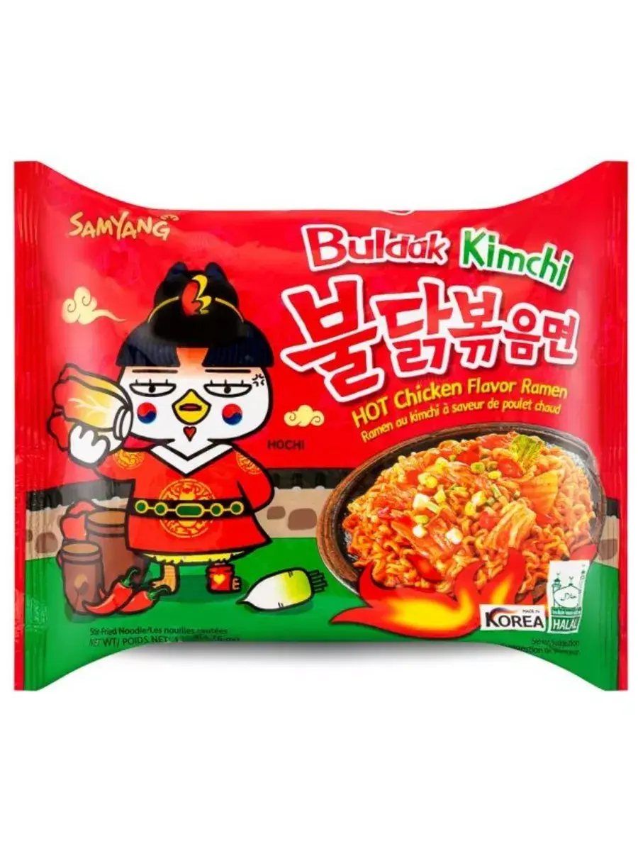 Buldak Kimchi, новый продукт в серии Samyang Buldak Hot Ramen - это продукт, подчеркивающий вкус корейской кухни! Лапша обладает увлекательным остро-кислым вкусом и содержит большое количество сушеных хлопьев кимчи для улучшения текстуры. Это отличный корейский продукт для любителей необычных, жгучих и сытных блюд азиатской кухни. Такое оригинальное соединение понравится любителям ярких новинок. Возможность моментально обеспечить себя большой порцией сытного обеда будет особенно ценна офисным работникам, ведь так можно сэкономить время и вкусно питаться во время перерыва в работе. Линейка острого рамена представлена разными вариациями и вкусами, но одним из популярных вариантов является Buldak Kimchi Ramen, поскольку именно кимчи – визитная карточка кухни Южной Кореи.