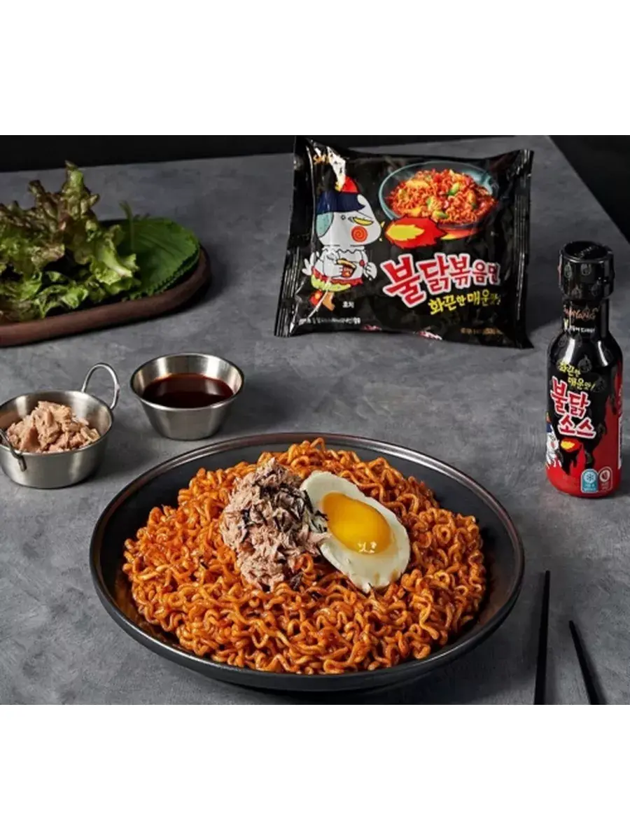 Корейскую курицу Булдак часто называют огненной, ведь она буквально насквозь пропитана жгучими и пряными специями – перцовой пастой, соевым соусом, черным и красным перцем, карри, луком и чесноком. Специально для любителей этого неподражаемого вкуса корейский бренд Samyang выпустил свой бестселлер – лапшу Hot Chicken Flavour Ramen, которую обязательно нужно попробовать поклонникам остроты и жгучести!