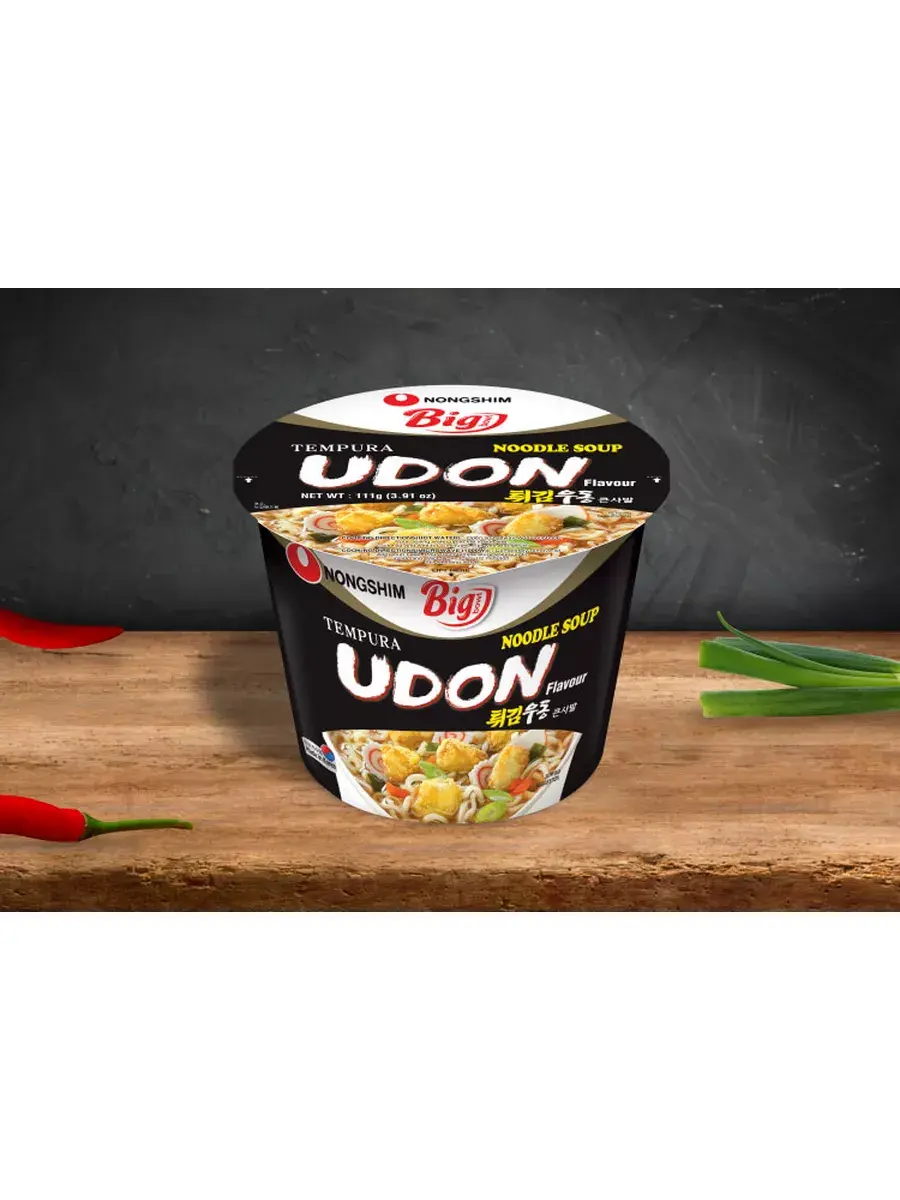 Удон — это белая паста с широкими нитями, приготовленная из пшеничной муки, соли и минеральной воды без добавления яиц. У нее пышная, мягкая и очень нежная текстура. Жареные креветки Темпура и насыщенный бульон Даши создают изумительную гармонию тонких вкусов, которая понравится тем, кто не любит слишком пряные и яркие ноты. Рыбный экстракт, морские водоросли и соевый соус обеспечивают правильный умами-вкус.