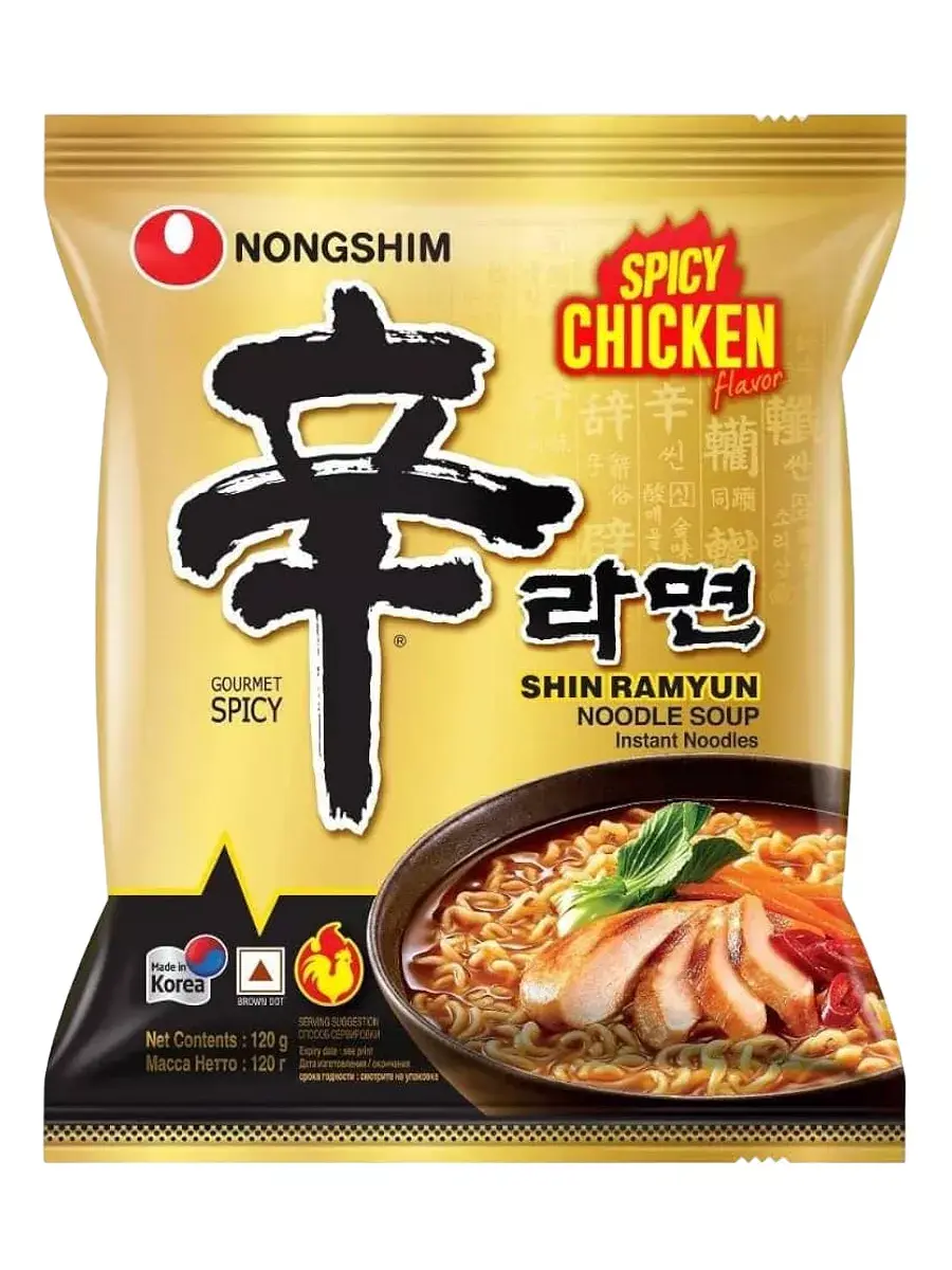Не боитесь кулинарных экспериментов? Тогда попробуйте супер-острую корейскую лапшу Рамен Шин! Шин Рамен со вкусом курицы – острая, ароматная и горячая паста, которая быстро утолит голод и согреет в холодный день Учтите, что жгучий бульон понравится исключительно тем, кто просто обожает острое. Приятный вкус лапши удачно дополняют хлопья из сушеной капусты бок-чой, моркови, красного перца, зеленого лука и грибов шиитаке. Поскольку лапша достаточно плотная, ее лучше варить. Готовят блюдо на плите: в кастрюлю кладут лапшу, высыпают овощную и суповую приправы, заливают 550 мл кипятка. Варят 4.5 мин., затем перемешивают. В микроволновой печи: в керамическую миску кладут лапшу и приправы, заливают 550 мл. теплой воды и готовят 4.5-5 мин. Перемешивают. В готовое блюдо можно добавить кокосовое молоко, зеленый лук, ароматные травы, отварную говядину, курятину, свинину. В комплекте 3 пачки по 120г.
