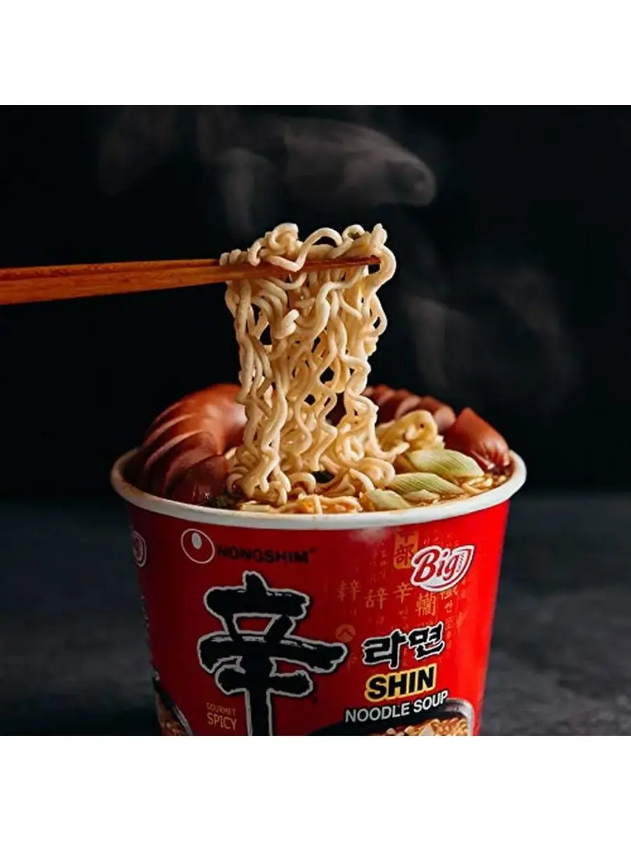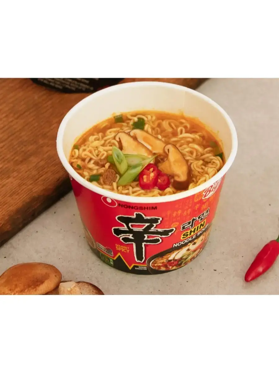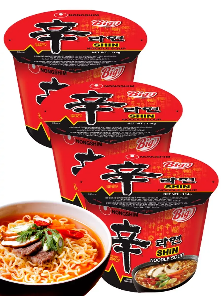 Не боитесь кулинарных экспериментов? Тогда попробуйте супер-острую корейскую лапшу Рамен Шин! Учтите, что жгучий бульон понравится исключительно тем, кто просто обожает острое. Приятный вкус лапши удачно дополняют хлопья из сушеной капусты бок-чой, моркови, красного перца, зеленого лука и грибов шиитаке. Поскольку лапша достаточно плотная, ее лучше варить. Готовят блюдо на плите: в кастрюлю кладут лапшу, высыпают овощную и суповую приправы, заливают 550 мл кипятка. Варят 4.5 мин., затем перемешивают. В микроволновой печи: в керамическую миску кладут лапшу и приправы, заливают 550 мл. теплой воды и готовят 4.5-5 мин. Перемешивают. В готовое блюдо можно добавить кокосовое молоко, зеленый лук, ароматные травы, отварную говядину, курятину, свинину. В комплекте 3 штуки по 114г.