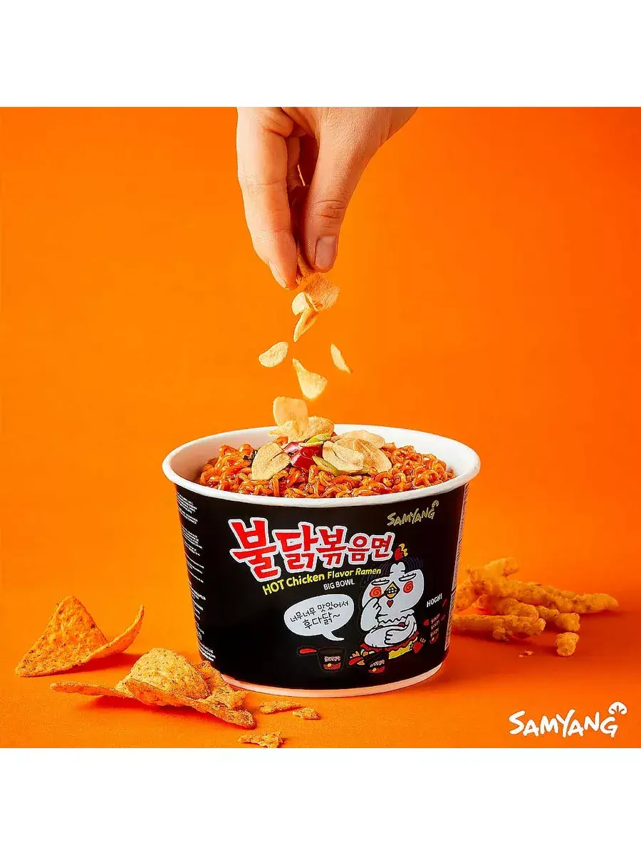 Хит для ценителей горячего и острого рамен: лапша Hot Chicken в красно-черной упаковке! Пристрастие корейцев к острым продуктам неслучайно: обилие перца и специй в рационе ускоряет обмен веществ, расщепляет жиры и поднимает иммунитет. Поэтому «вкусное», «острое» и «полезное» для жителей страны утренней свежести — синонимы.