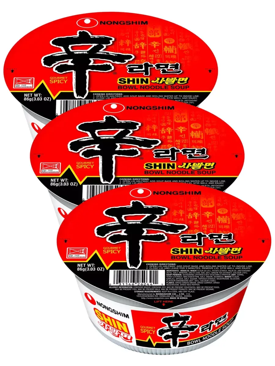 Лапша в чашке Shin Ramyun идеально подходит для тех, кто любит вкус Шин! Больше лапши, больше свежих овощей и вкуснейший суп — все готово к употреблению всего за 4 минуты. Новая формула содержит меньше натрия и не содержит глутамата натрия, поэтому она наверняка понравится всем. Вся лапша производится из свежих фермерских продуктов, зерна высшего качества и лучших смесей специй. И все со знаменитым вкусом Шин – восхитительно пикантным и доступным. Настоящая корейская специя, которую вы любите, в миске. В комплекте 3 чашки по 86г.