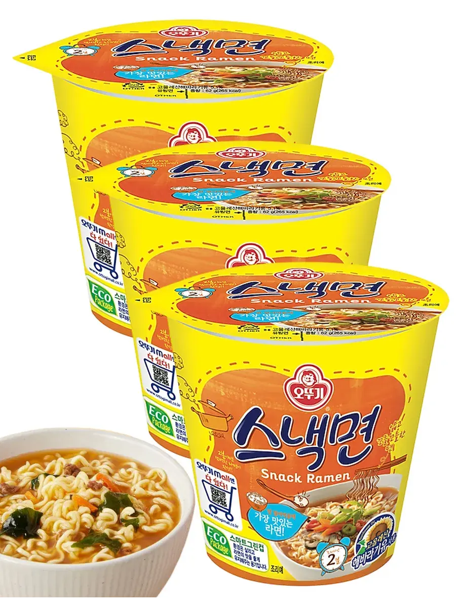 Лапша быстрого приготовления бренда Оттоги "Snack Ramen" - это отличный вариант вкусного и быстрого обеда. Традиционно высокое корейское качество лапши в сочетании с говяжьим бульоном с пикантной ноткой грибов и морских водорослей. Отличный вариант вкусного обеда. Лапшу можно использовать и как гарнир к другим блюдам. Нежный и упругий пшеничный рамен обладает приятной жевательной текстурой. Удобный порционный стакан позволит взять продукт в дорогу или на работу – чтобы перекусить, вам потребуется только залить лапшу горячей водой. В комплекте 3 стакана по 62г.