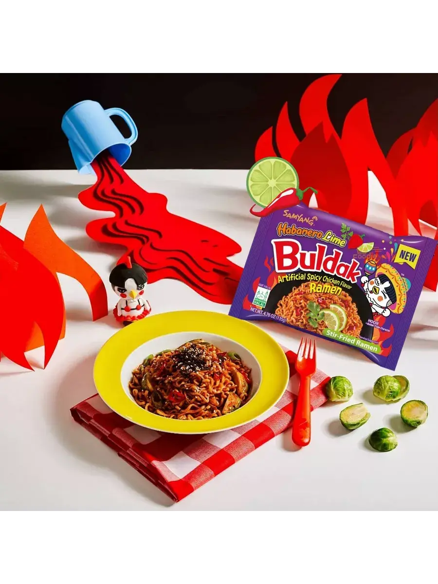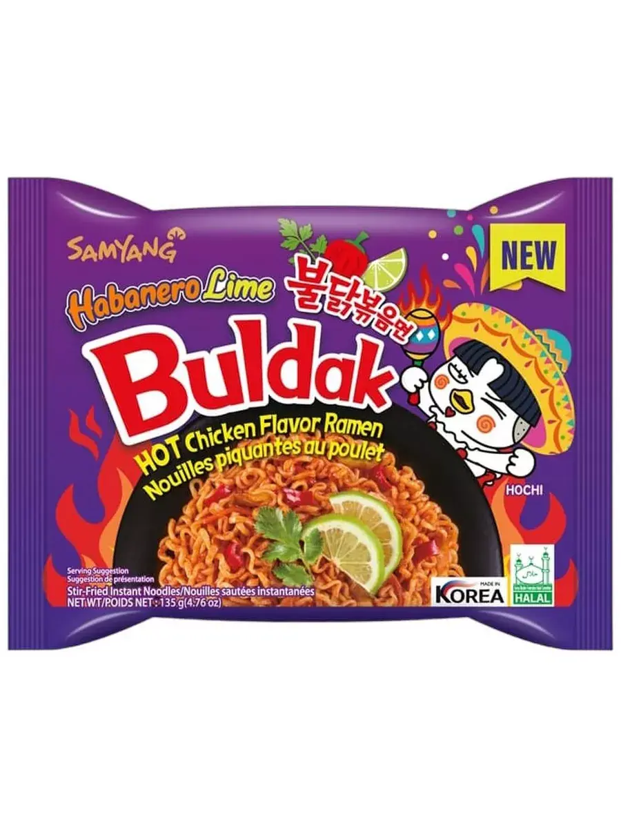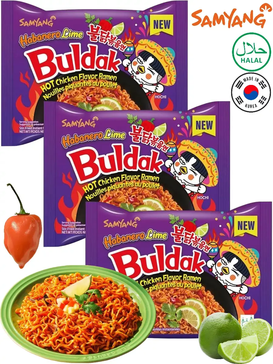 Лапша быстрого приготовления "Hot Chicken Flavor Ramen Habanero Lime Buldak" представляет собой острый и ароматный вариант известной серии "Buldak" от Samyang. Этот продукт сочетает в себе интенсивный вкус курицы с пикантной остротой перца Хабанеро и свежестью лайма, создавая уникальное гастрономическое сочетание. Острый перец Хабанеро — это символ мексиканской культуры и кулинарное вдохновение для многих шеф-поваров! Упаковка содержит лапшу и специальные приправы, которые легко превращаются в вкусное и ароматное блюдо всего за несколько минут. Лапша идеально подходит для тех, кто любит острую пищу и хочет испытать новые вкусовые ощущения. Компактная упаковка облегчает хранение и транспортировку, что делает ее удобной для употребления в различных условиях - будь то дома, в офисе или во время путешествий. В комплекте 3 упаковки по 135г.