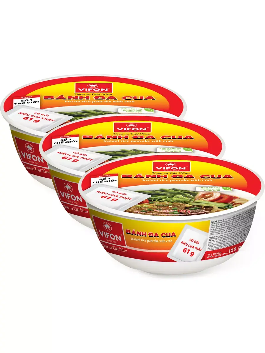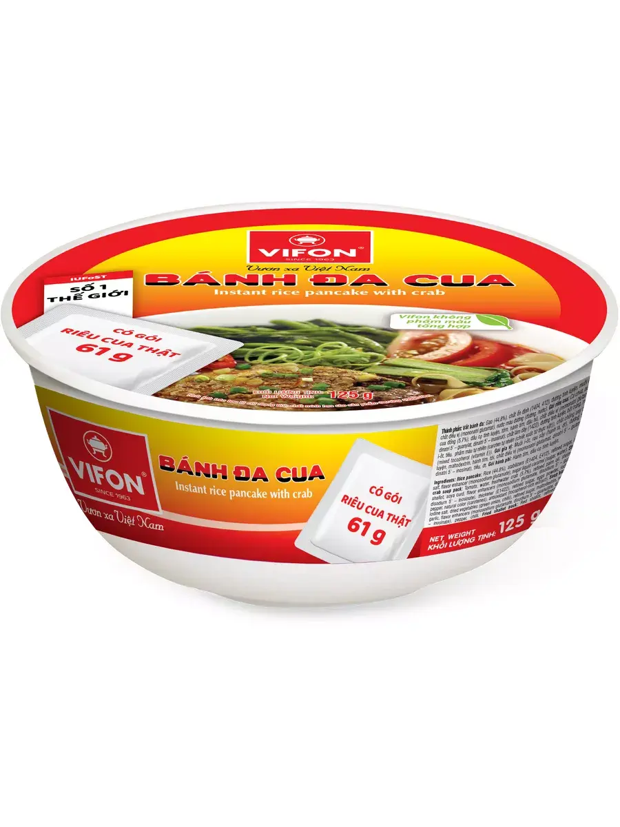 Лапша рисовая со вкусом краба — это изысканное блюдо, которое понравится всем любителям вьетнамской кухни. Она приготовлена из высококачественного рисового теста и обогащена натуральным экстрактом краба, который придает ей неповторимый вкус и аромат. Лапша-суп быстрого приготовления со вкусом краба от торговой марки Vifon – это находка для поклонников необычных вьетнамских блюд. Рисовая лапша отлично сочетается с бульоном, а аромат морепродуктов будоражит аппетит.