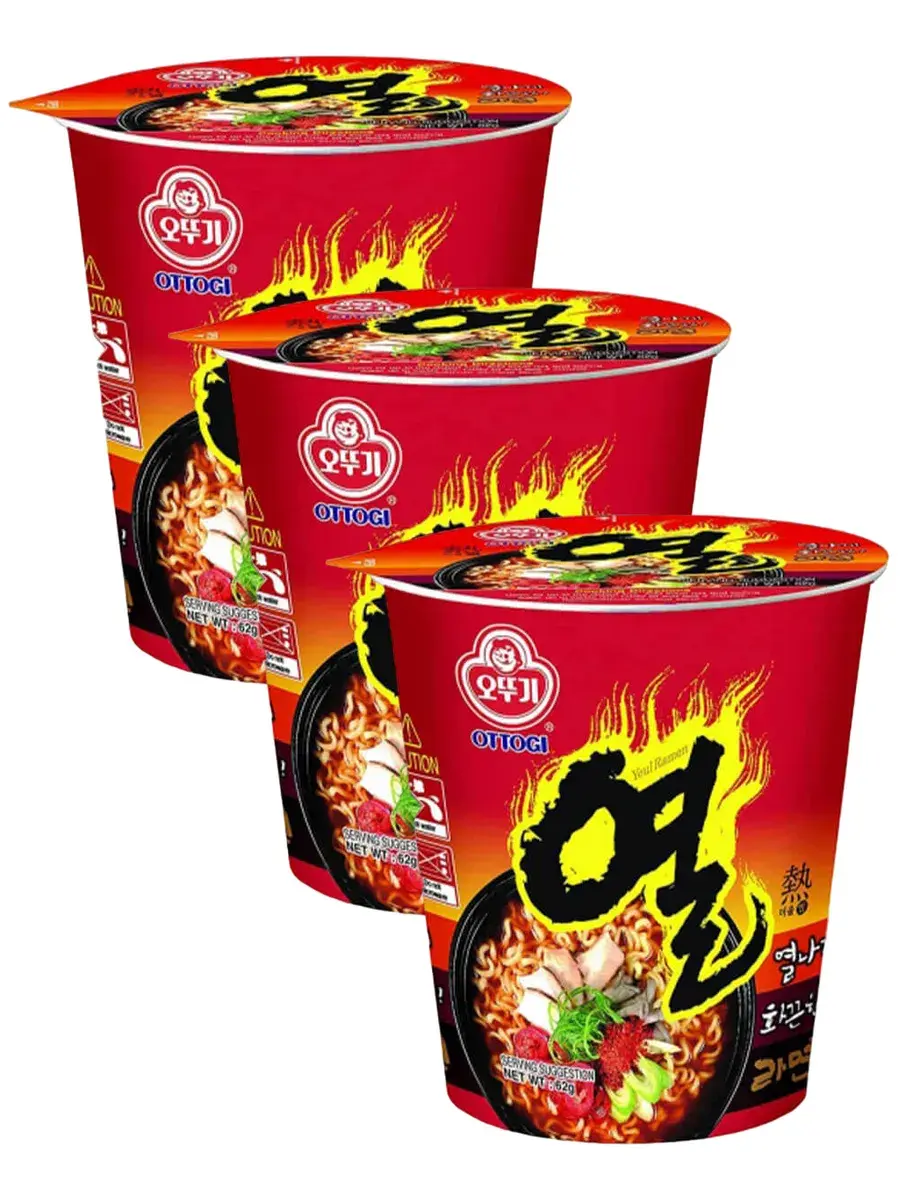 Самый популярный продукт – корейская лапша быстрого приготовления. «Юль», что по-корейски означает «очень», Оттоги представляет Йёль Рамен, очень острый с острым перцем. Наслаждайтесь необыкновенно пряным вкусом! Сочетая аутентичный вкус с традиционными ингредиентами, острый бульон и толстая лапша являются отличным примером корейского вкуса, который никогда не перестает удивлять. Почувствуйте тепло Ottogi Yeul Ramen, сочетая качественные овощи, густую жевательную лапшу и насыщенный пряный говяжий бульон с красным перцем в идеальной миске с лапшой. Мягкая и жевательная лапша в остром, ароматном бульоне означает, что вы получите вкусную еду всего за 2 минуты 30 секунд. Изготовленный из свежих фермерских продуктов, зерна высшего качества и лучших смесей специй, вам гарантирован характерный восхитительный аромат и пряный вкус. В комплекте 3 стакана по 62г.