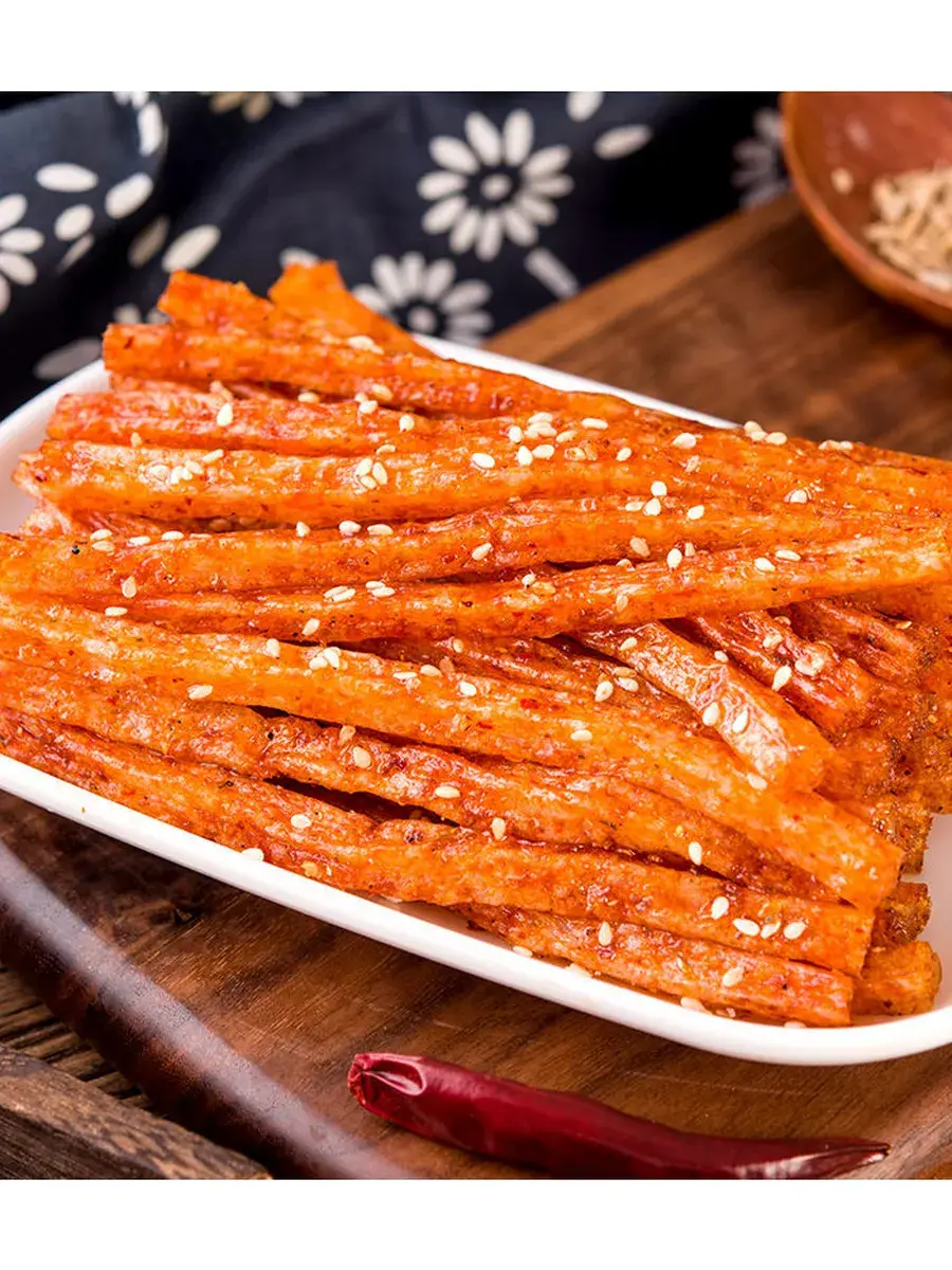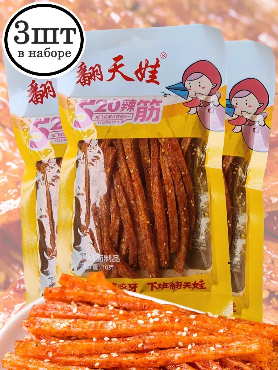 Латяо — популярная китайская закуска, которую обязательно стоит попробовать каждому любителю острых и необычных вкусов. Её основа — пшеничная клейковина, пропитанная ароматным маслом и фирменной смесью специй. За счёт особой технологии приготовления латяо приобретает плотную, слегка жевательную текстуру, а насыщенный вкус с нотками пряностей и остроты делает его настоящим гастрономическим открытием. Родом из Китая, латяо уже давно стал культовым продуктом среди молодежи и фанатов уличной еды. Его едят в школах, на работе, дома и даже в дороге — благодаря компактной упаковке и высокой сытности. Это идеальный перекус, когда хочется чего-то яркого, пикантного и запоминающегося. В комплекте 3 пачки по 70г.