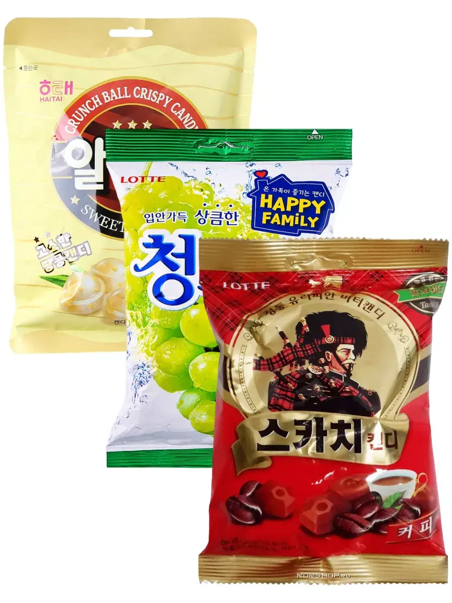 Наслаждайтесь хрустящими арахисовыми леденцами, где сочетаются пикантный аромат арахиса и нежная сладость карамели. Конфеты содержат 9% арахиса – только отборный, высококачественный арахис, который придает этим леденцам более насыщенный вкус. Леденцы с вкусом зелёного винограда от корейской торговой марки Lotte представляют собой великолепное сочетание качественных ингредиентов и неповторимого вкуса. Особенностью этого продукта является высокое содержание концентрированного виноградного сока - целых 12%. Леденцы с кофейным вкусом Скотч Кофе от rорейской торговой марки Lotte - это леденцы с приятным кофейным вкусом, смягченным нежными сливочными нотками. В комплекте 3 пачки ассорти вкусов.