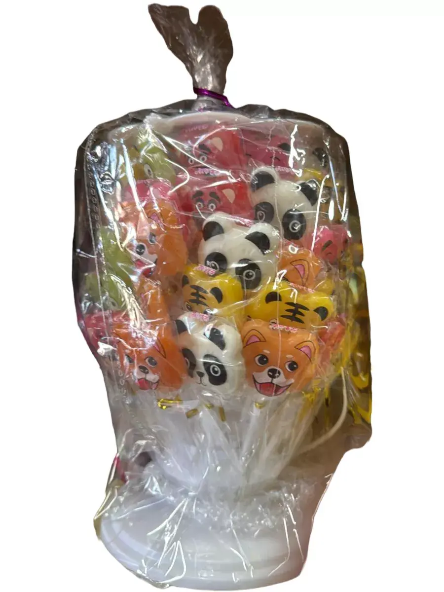 Окунитесь в мир сладкого волшебства с букетом из леденцов "Зоопарк на палочке"! Этот восхитительный подарок обязательно покорит сердца и взрослых, и детей. Леденцы на палочке выполнены в виде милых и ярких зверушек. Букет из фруктовых леденцов на палочке — это креативный способ представления сладостей, который включает в себя различные леденцы, собранные в "букет". Украсьте детский день рождения или любое другое торжество букетом из сладких зверят, и радость в глазах малышей вам обеспечена. В комплекте 1 блок, в котором 60 штук леденцов по 15г. Каждый леденец упакован в индивидуальную обертку.