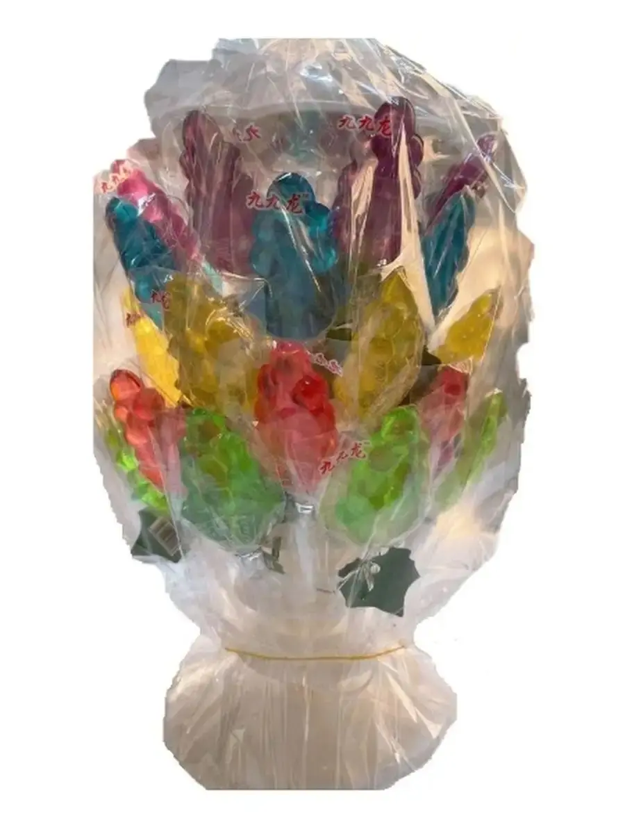 Леденцы на палочке со вкусом винограда имеют очень аппетитную форму и привлекательные яркие цвета! Необычная сладость с легкостью украсит любой детский праздник или дружескую встречу, а также поднимет настроение во время обычного перекуса. Любители азиатских сладостей оценят!