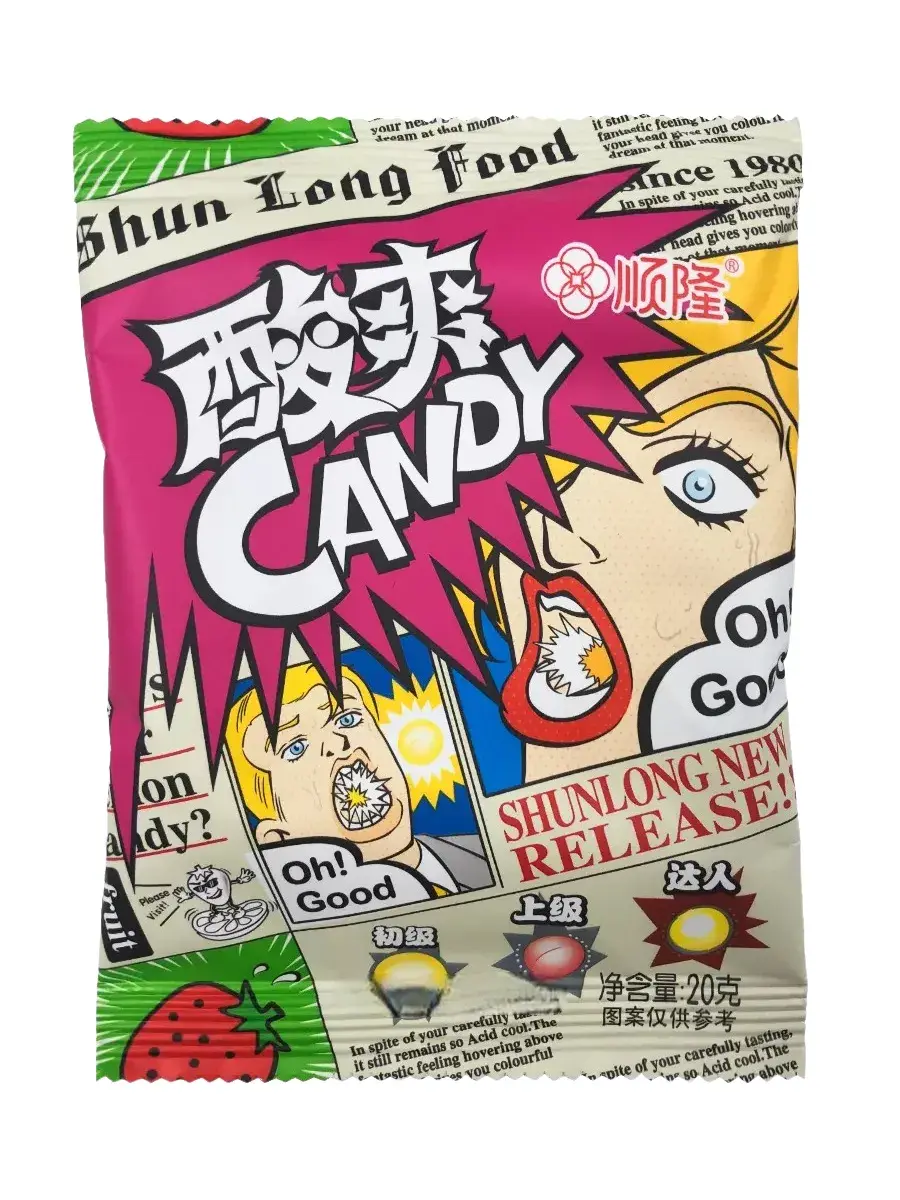 Освежающая карамель придется по вкусу всем любителям необычных азиатских конфет. Добавьте немного новых ощущений вашим ежедневным сладким десертам! Приятная кислинка постепенно перетекает в фруктово-сладкий вкус. Удобная упаковка позволяет брать конфеты с собой и угощать друзей. Пачка с легкостью помещается в кармане или сумке. Можно соревноваться с друзьями, кто больше продержит кислую карамельку. В комплекте 1 блок, в котором 20 пачек по 20г.