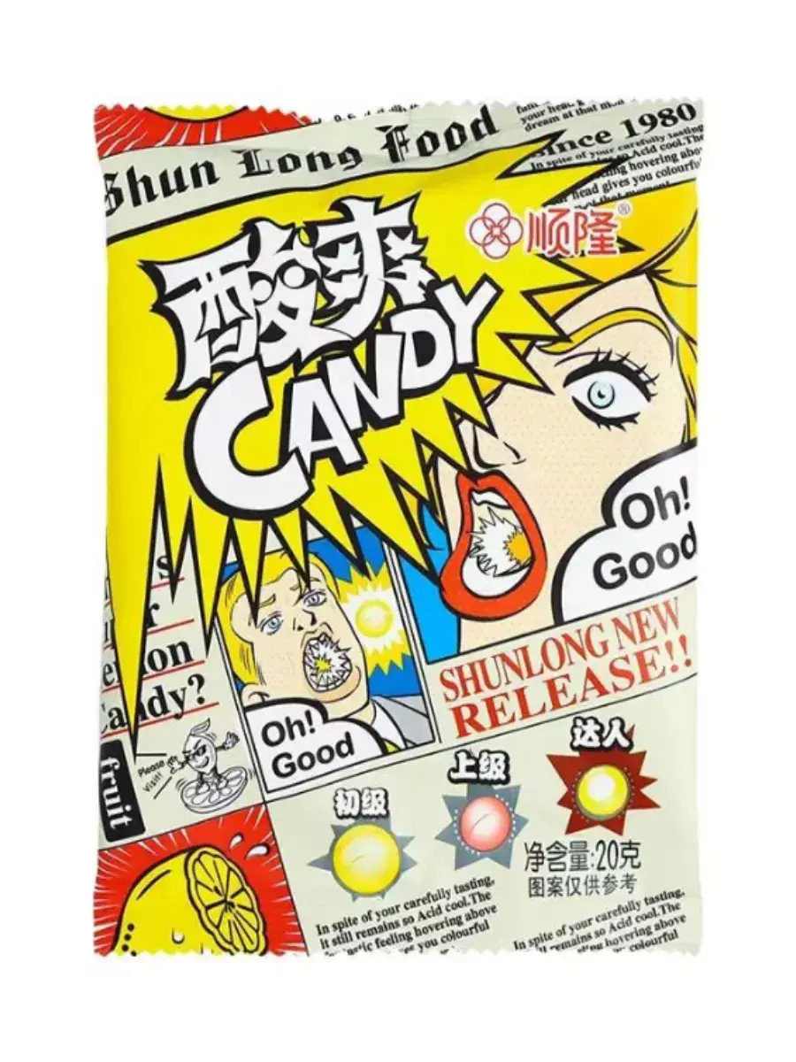 Освежающая карамель придется по вкусу всем любителям необычных азиатских конфет. Добавьте немного новых ощущений вашим ежедневным сладким десертам! Приятная кислинка постепенно перетекает в фруктово-сладкий вкус. Удобная упаковка позволяет брать конфеты с собой и угощать друзей. Пачка с легкостью помещается в кармане или сумке. Можно соревноваться с друзьями, кто больше продержит кислую карамельку. В комплекте 1 блок, в котором 20 пачек по 20г.