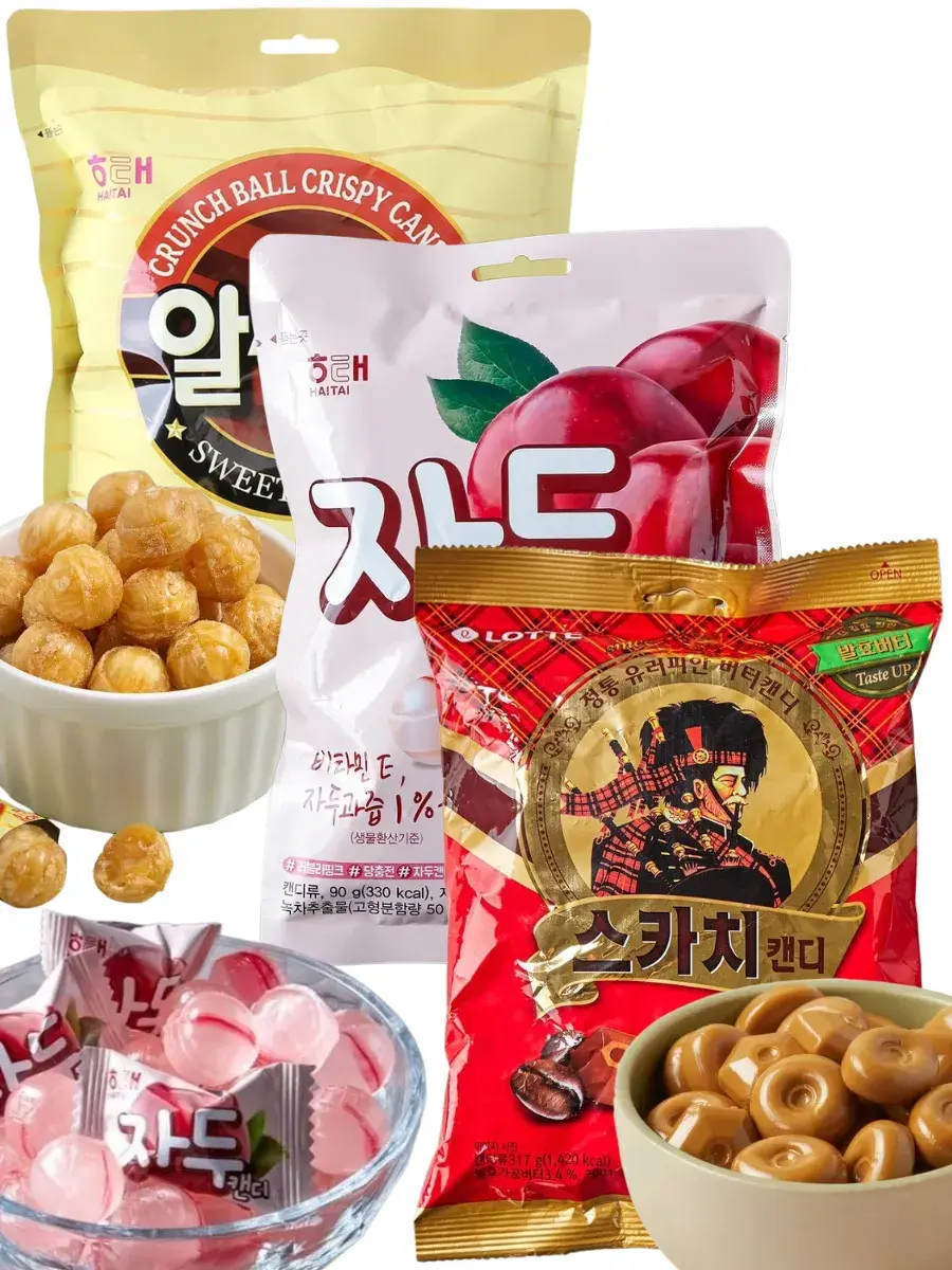 Наслаждайтесь хрустящими арахисовыми леденцами, где сочетаются пикантный аромат арахиса и нежная сладость карамели. Конфеты содержат 9% арахиса – только отборный, высококачественный арахис, который придает этим леденцам более насыщенный вкус. Леденцовая карамель Plum Candy содержит натуральный концентрированный сок корейской красной сливы. Корейская слива — это подвид китайской сливы с более крупными и сладкими плодами. Леденцы с кофейным вкусом Скотч Кофе от корейской торговой марки Lotte - это леденцы с приятным кофейным вкусом, смягченным нежными сливочными нотками. Эти конфеты могут стать хорошей заменой бодрящему напитку, когда нет возможности его выпить, а необходимо быстро восстановить тонус. Содержат натуральный обжаренный кофе. Каждая конфета упакована в индивидуальную упаковку, сохраняя свежесть и аромат на долгое время. В комплекте 3 пачки ассорти вкусов.