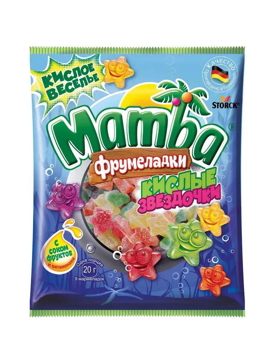 Mamba Фрумеладки – кислое веселье начинается! Яркие и забавные Кислые Звездочки подарят взрывной вкус и заряд радости. Этот жевательный мармелад с фруктовым соком и витаминами объединяет насыщенные фруктовые оттенки с приятной кислинкой, создавая идеальное сочетание. Каждая звездочка – это вспышка веселья, готовая отправить тебя в океан невероятных вкусовых ощущений. Сочные, кисленькие и безумно вкусные, они понравятся и детям, и взрослым! Производятся в Германии в соответствии с международными стандартами качества, поэтому каждая порция – это не только удовольствие, но и высокое качество. Лови свою порцию кислого веселья вместе с Mamba Фрумеладки Кислые Звездочки и отправляйся в сладкое путешествие! В комплекте 3 пачки по 70г.