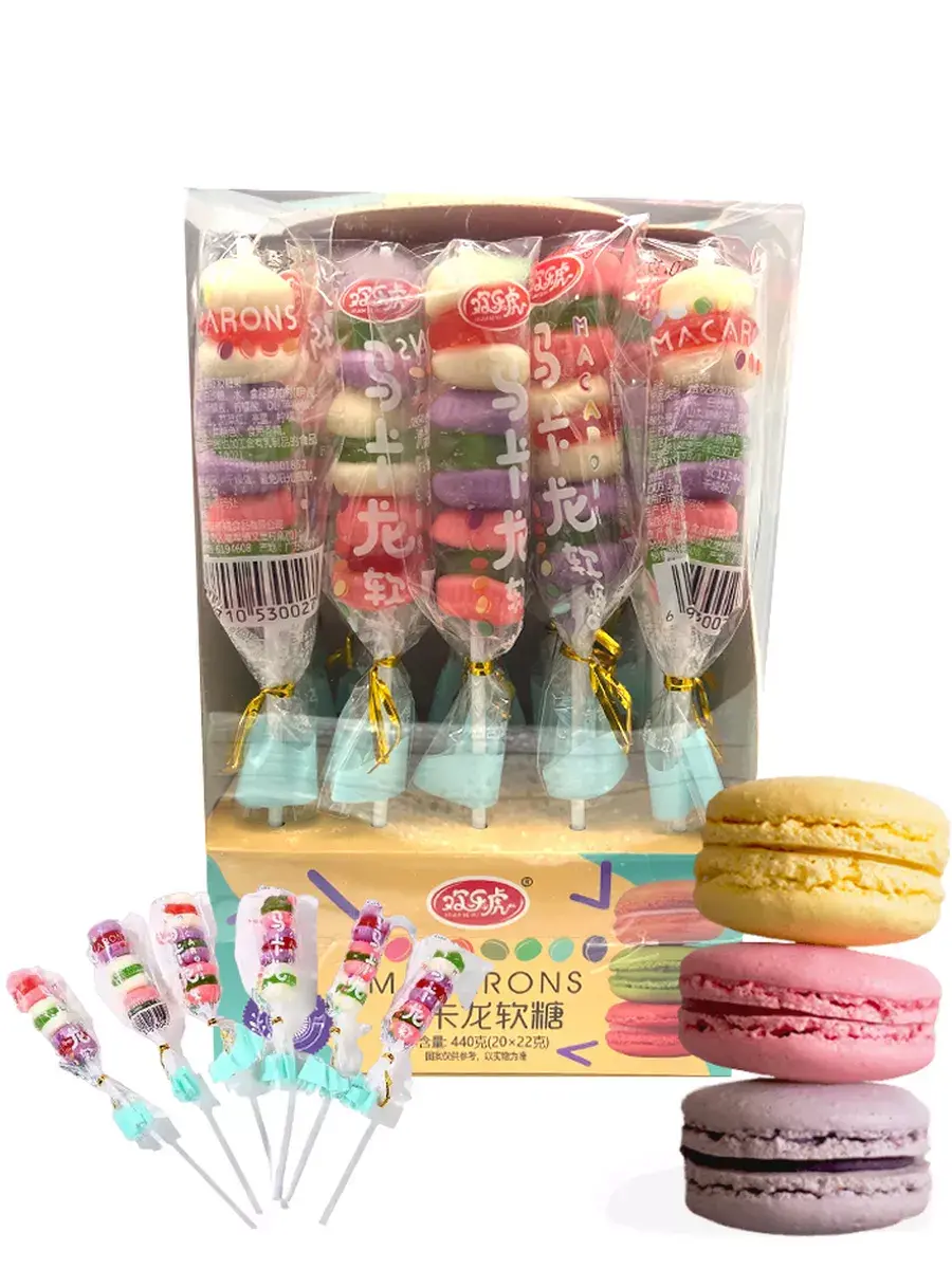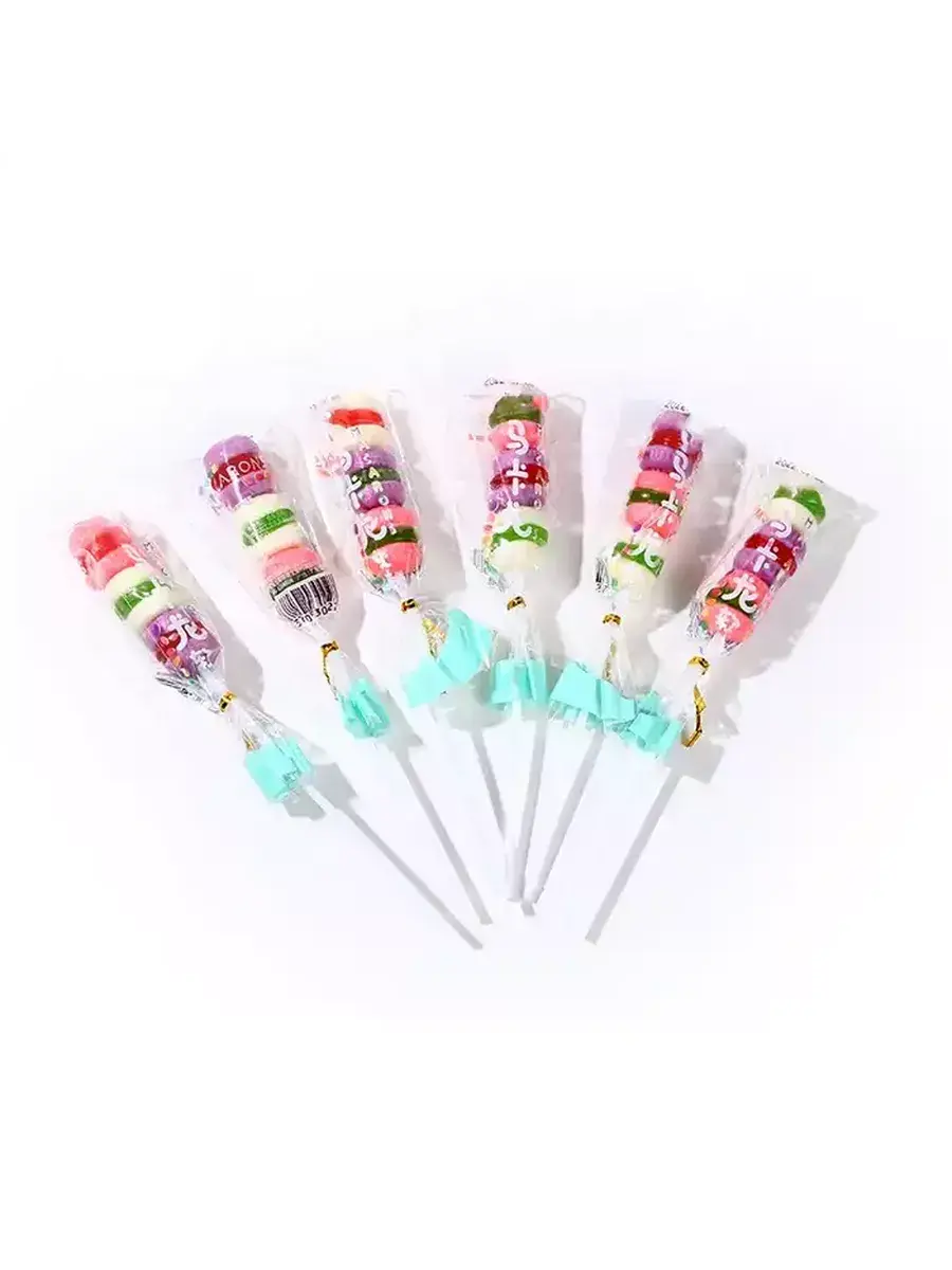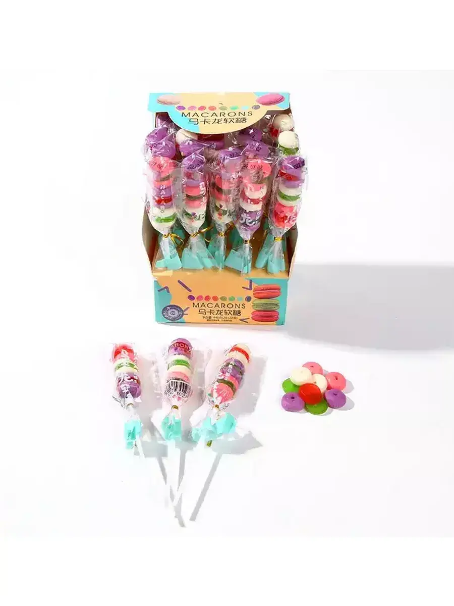 Жевательный мармелад на палочке в форме пирожного макаруна - это удивительное сочетание вкуса и креативности в мире сладостей. Эти уникальные сладкие угощения предлагают вам не только насыщенный фруктовый вкус, но и визуальное воссоздание формы популярного пирожного макаруна.