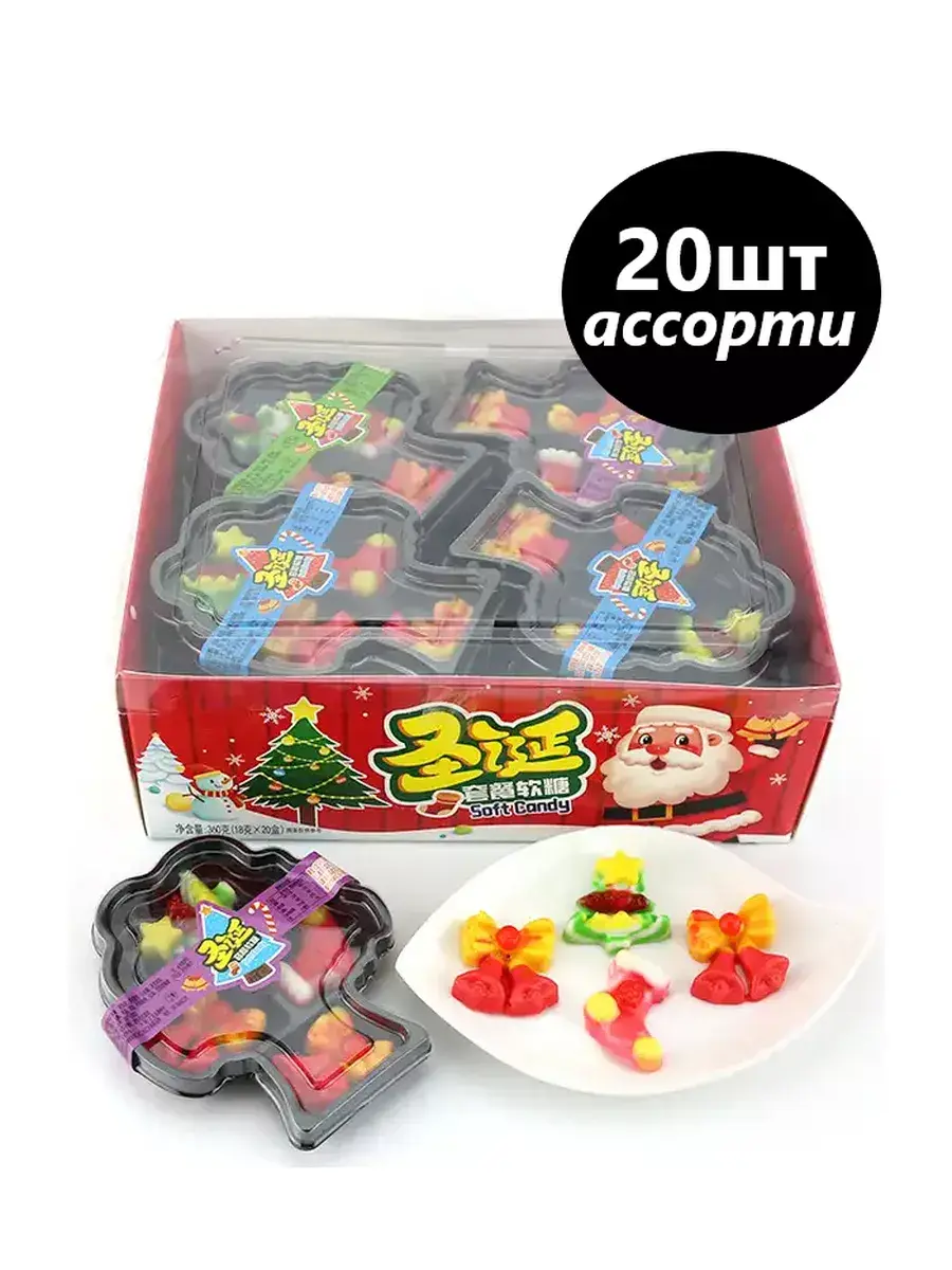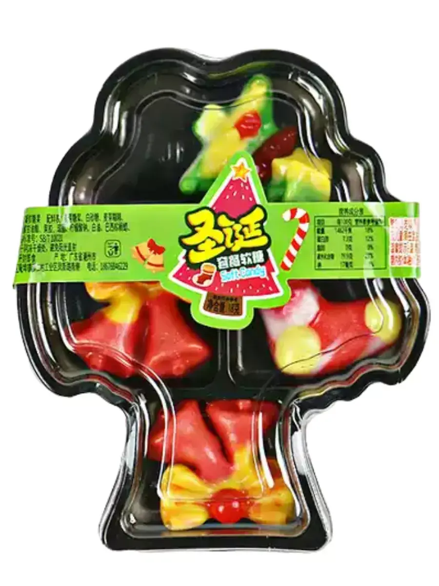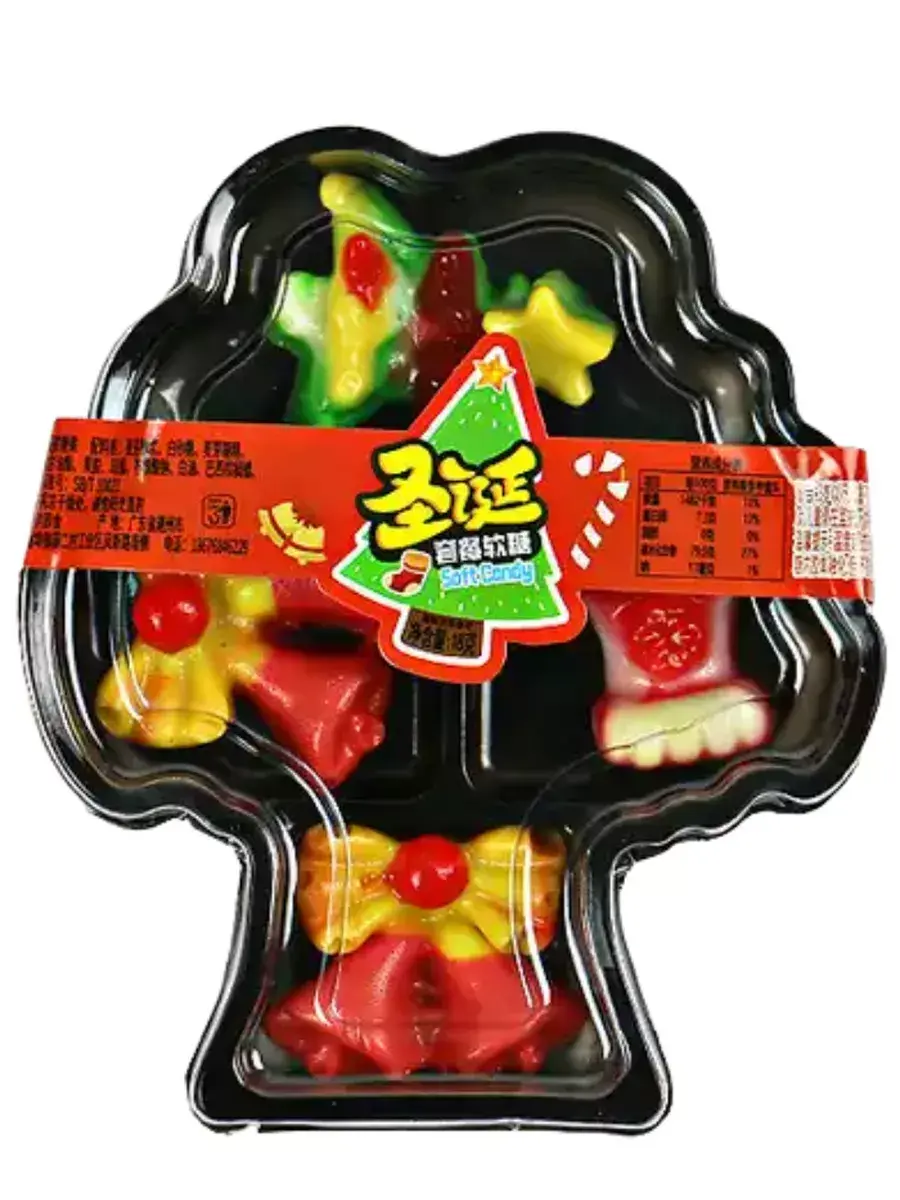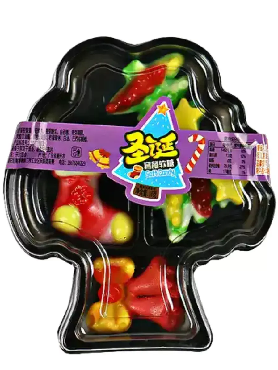 Елочка, рождественские колокольчики и сапожок украсят любой праздник и порадуют ваших деток. Помимо необычной формы, мармелад имеет мягкую жевательную текстуру, благодаря которой, лакомство просто тает во рту. Добавьте немного праздничного уюта и рождественского настроения, используя волшебное угощение. Каждый лоток выполнен в форме деревца, в котором находится 4 штуки мармеладок разного вида. В блоке 20 лотков по 18г.