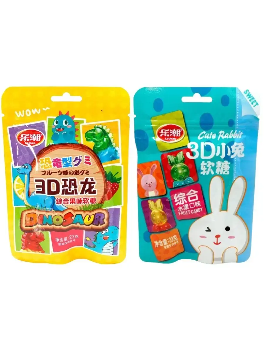 Мармеладки в форме динозавриков и кроликов с фруктовыми вкусами - это необычный мармелад в виде объемных ЗD динозавриков и кроликов. Такие яркие и забавные мармеладки точно понравятся любителям азиатских сладостей! Фигурный мармелад - любимое лакомство многих еще с самого детства, ведь такое лакомство поднимет настроение во время трапезы как детям, так и взрослым. Мармелад в виде разноцветных динозавриков и кроликов с легкостью украсит любой детский праздник или дружескую встречу. Благодаря удобной упаковке, его можно брать везде с собой и угощать родных и близких. В своем составе, мармелад содержит фруктовый сок, что делает его вкус еще более сочным и летним. В коробке 20 индивидуальных упаковок мармелада двух разных видов.