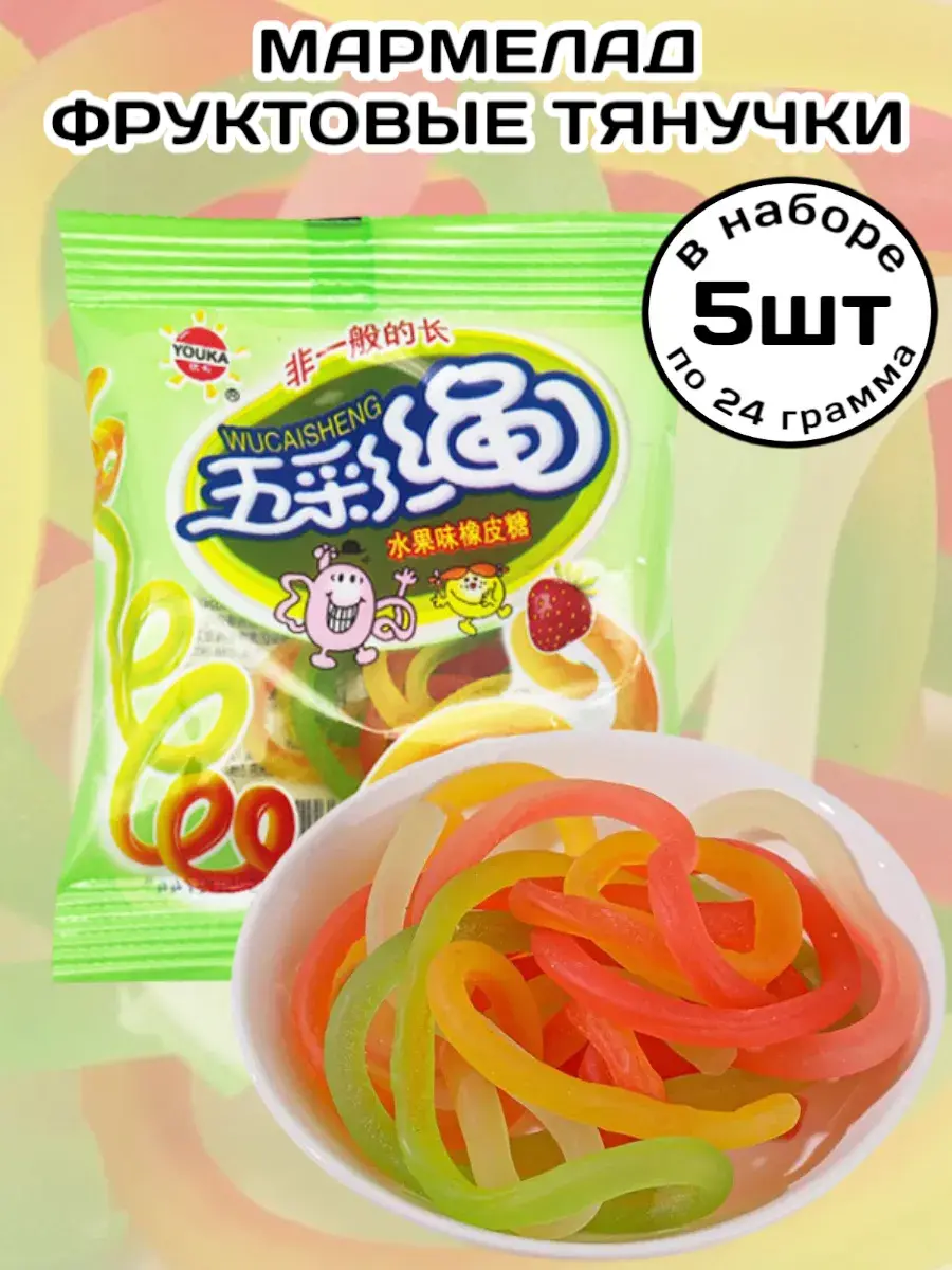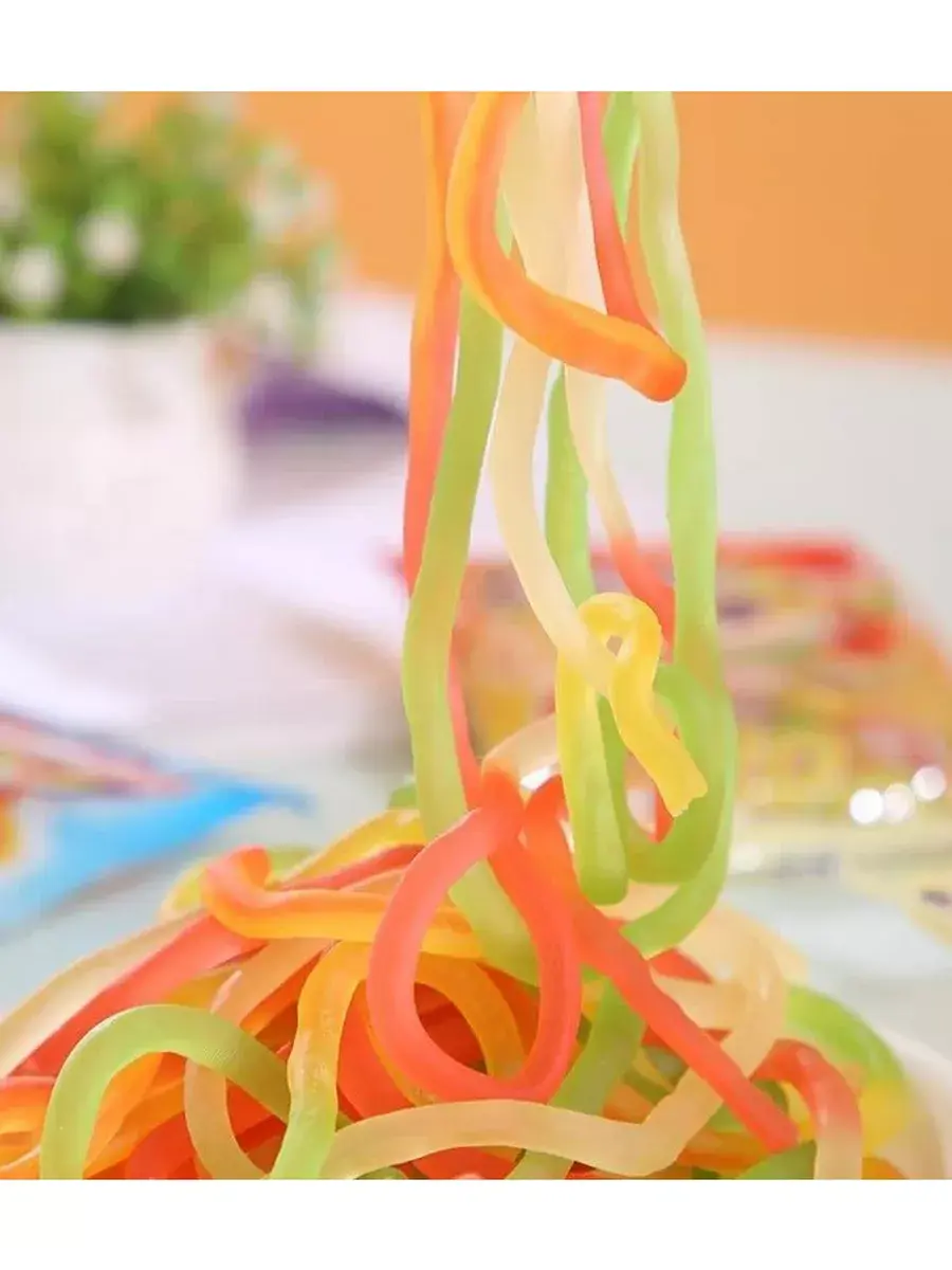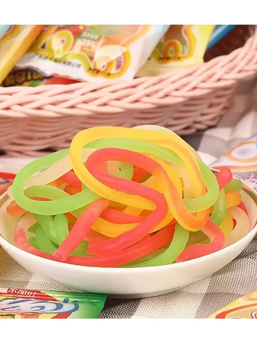 Мармеладные тянучки в виде длинных разноцветных шнурков - это оригинальное лакомство, приносящее яркие краски и веселое настроение! Эти уникальные мармеладки не только радуют глаз своим разноцветным внешним видом, но и пленяют вкусовые рецепторы фруктовыми вкусами. Невероятное разнообразие цветов и эластичная форма мармелада не только добавляет веселья в каждый кусочек, но и делает этот десерт привлекательным для любого возраста, ведь с такими тянучками можно придумывать различные забавы во время трапезы. Сочетание цитрусовой свежести апельсина, ягодной сладости клубники и винограда в каждом шнурке раскрывает богатство вкусового спектра. Эти сладкие ленты станут прекрасным угощением на детских вечеринках, корпоративных мероприятиях или просто в кругу семьи. Цвет упаковки может отличаться, при этом вкус остается одинаковым.