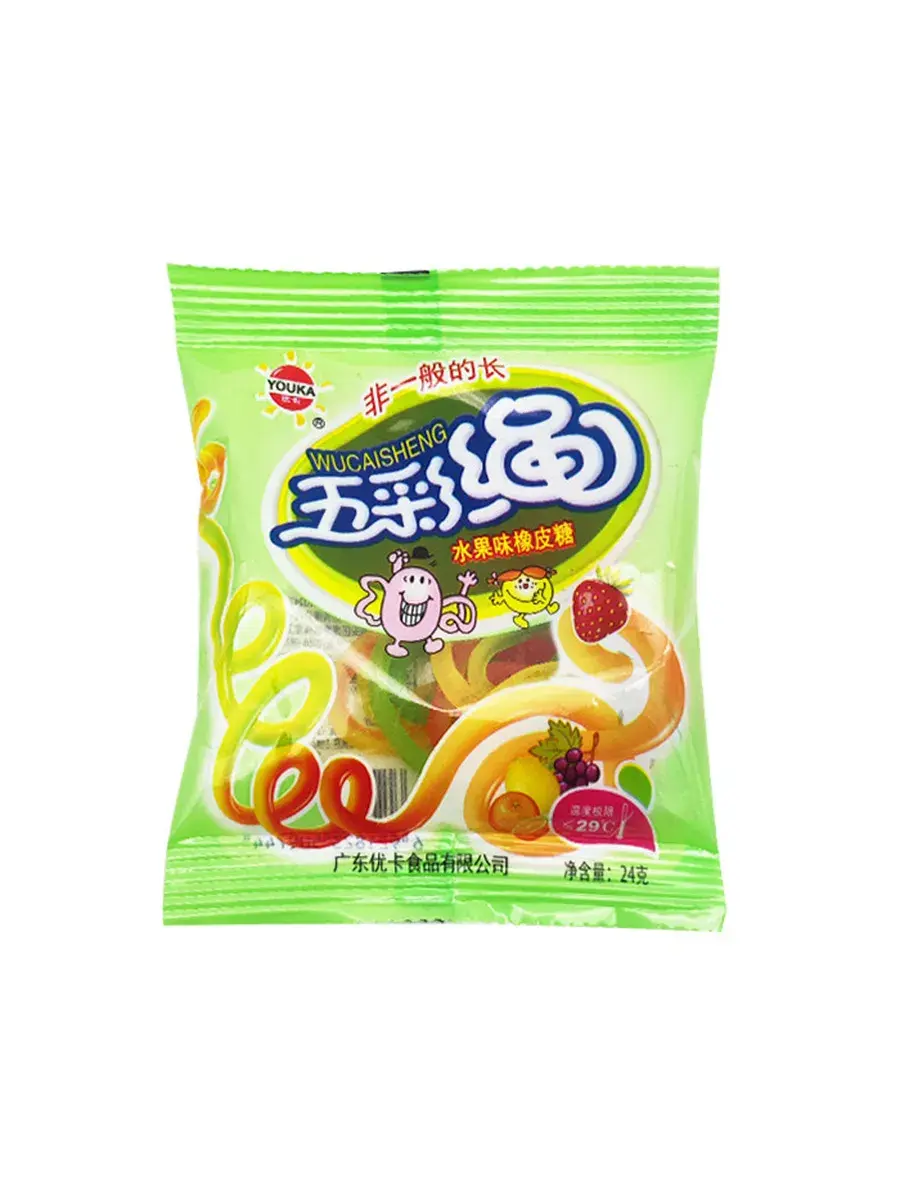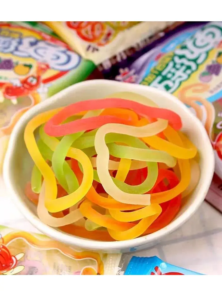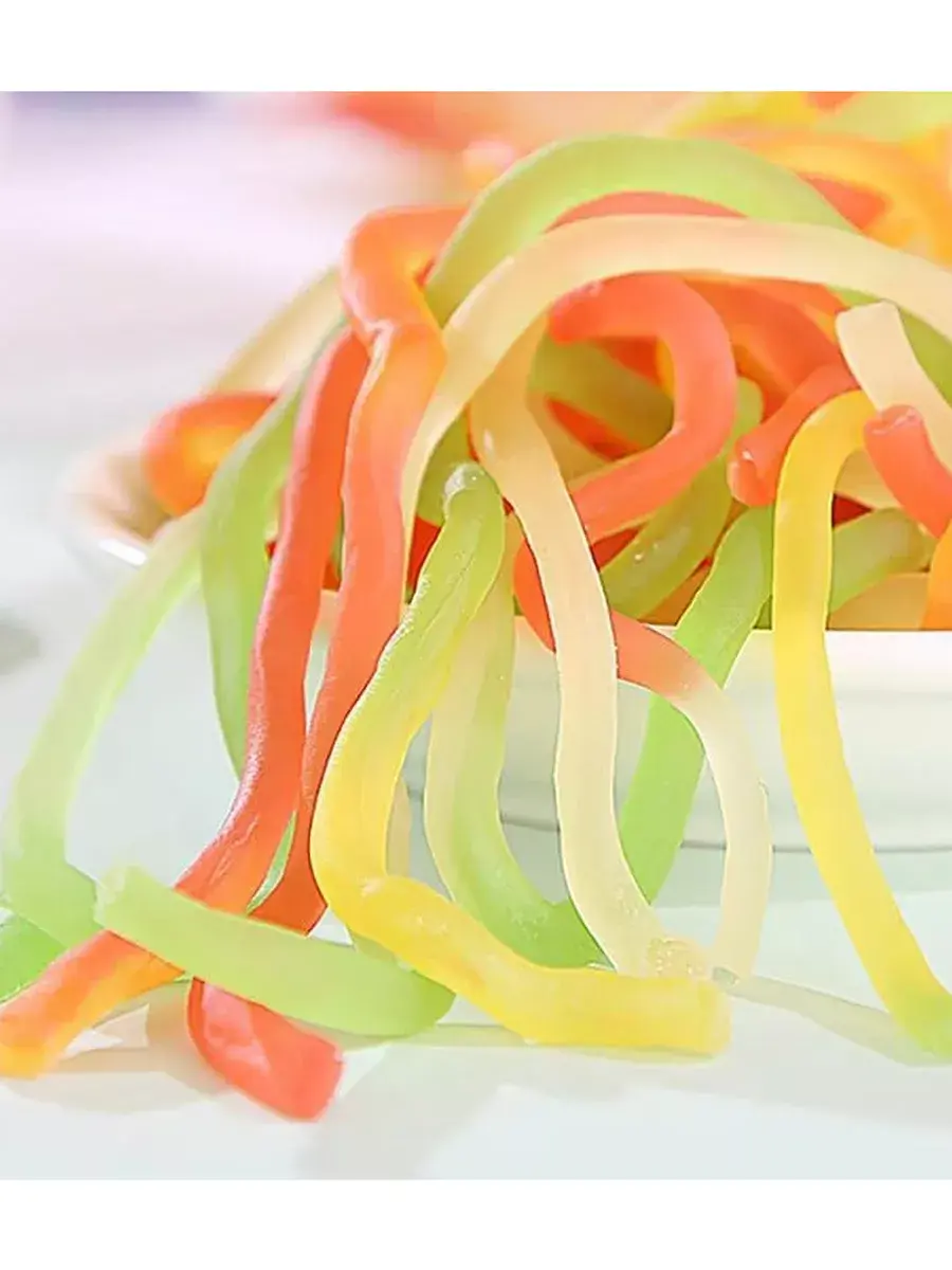 Мармеладные тянучки в виде длинных разноцветных шнурков - это оригинальное лакомство, приносящее яркие краски и веселое настроение! Эти уникальные мармеладки не только радуют глаз своим разноцветным внешним видом, но и пленяют вкусовые рецепторы фруктовыми вкусами. Невероятное разнообразие цветов и эластичная форма мармелада не только добавляет веселья в каждый кусочек, но и делает этот десерт привлекательным для любого возраста, ведь с такими тянучками можно придумывать различные забавы во время трапезы. Сочетание цитрусовой свежести апельсина, ягодной сладости клубники и винограда в каждом шнурке раскрывает богатство вкусового спектра. Эти сладкие ленты станут прекрасным угощением на детских вечеринках, корпоративных мероприятиях или просто в кругу семьи. Цвет упаковки может отличаться, при этом вкус остается одинаковым.