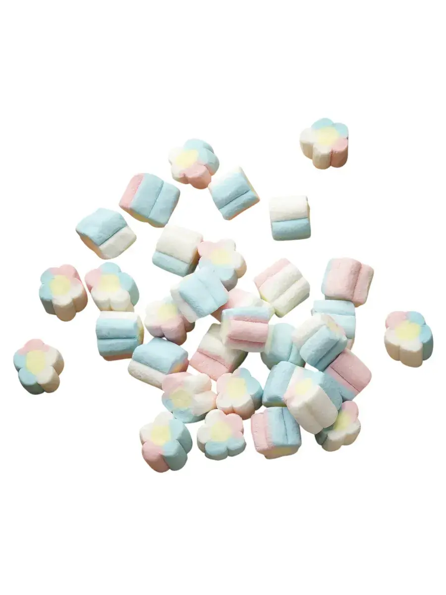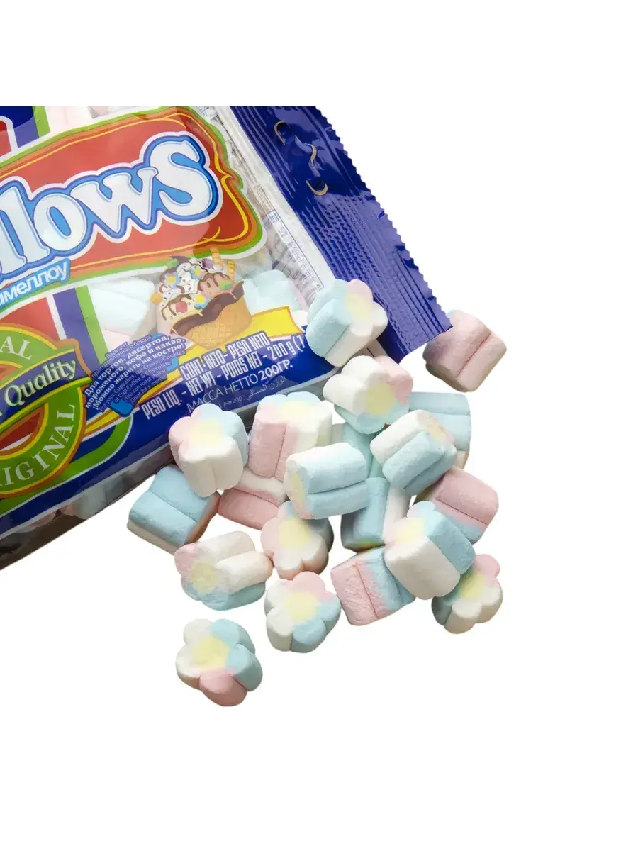 Маршмеллоу в форме цветочков с фруктовым вкусом! Эти нежные тающие во рту маршмеллоу можно жарить на костре, плавить в духовке или микроволновой печи, есть прямо из пачки, добавлять в горячий шоколад, какао, кофе, коктейли. Нежные фруктовые цветочки станут отличным топпингом для мороженого, украшением для тортов, десертов или фруктовых салатов и незаменимы при создании сладких букетов и композиций. Без жира. Без глютена. Без лактозы. Без яичного белка. Нежные зефирки маршмеллоу изготовлены на основе высококачественного говяжьего желатина с сертификацией "Халяль". В комплекте 3 пачки по 200г.