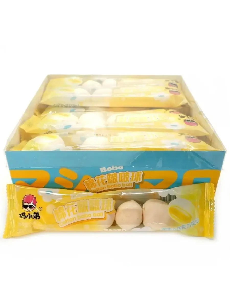 Воздушные шарики маршмеллоу с начинкой со вкусом манго находятся в индивидуальной упаковке - это отличный вариант для перекуса в дороге или на прогулке.
