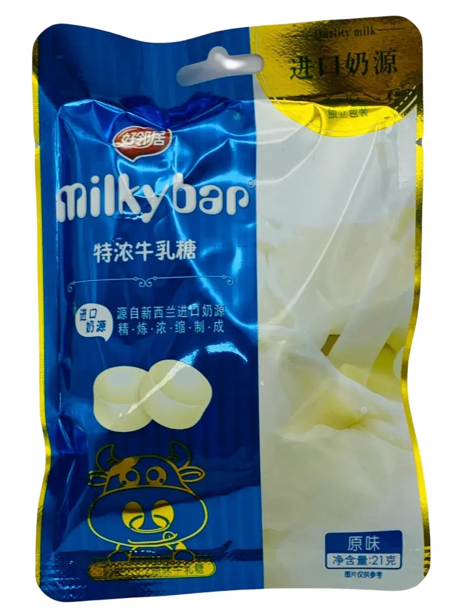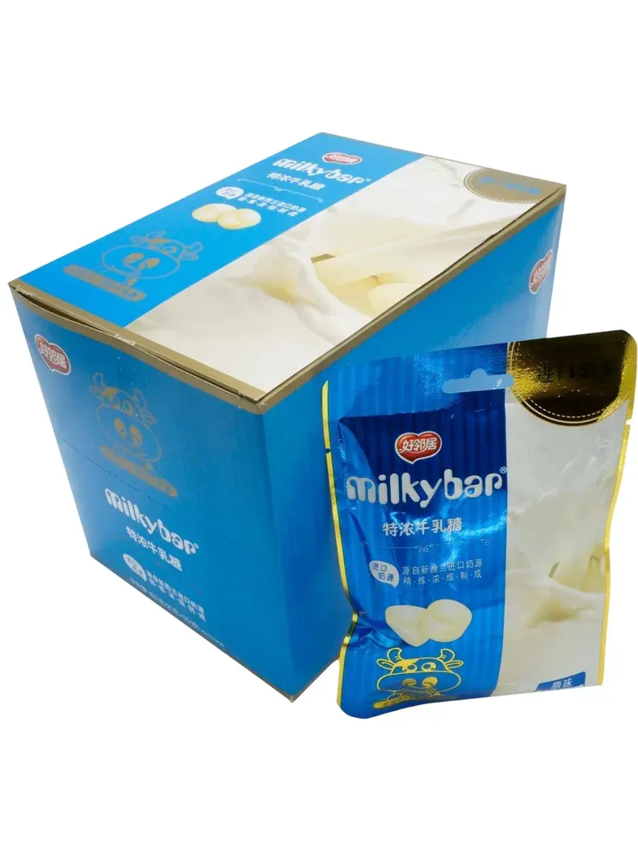 Почувствуйте вкус детства с молочными конфетами Milkybar! Каждая конфетка насыщена ароматом сгущенного молока и создана из натуральных ингредиентов, включая молоко высшего качества Эти сладости не просто тают во рту – они наполняют день теплом и уютом. Отличный выбор для чашки чая, угощения друзей или просто для того, чтобы побаловать себя. Хотите добавить сладости в свой день? Эти конфеты идеально подходят для любого случая! Комплимент к утреннему кофе, лакомство в дорогу, милый подарок для тех, кого вы цените. В блоке 20 пачек по 21г.