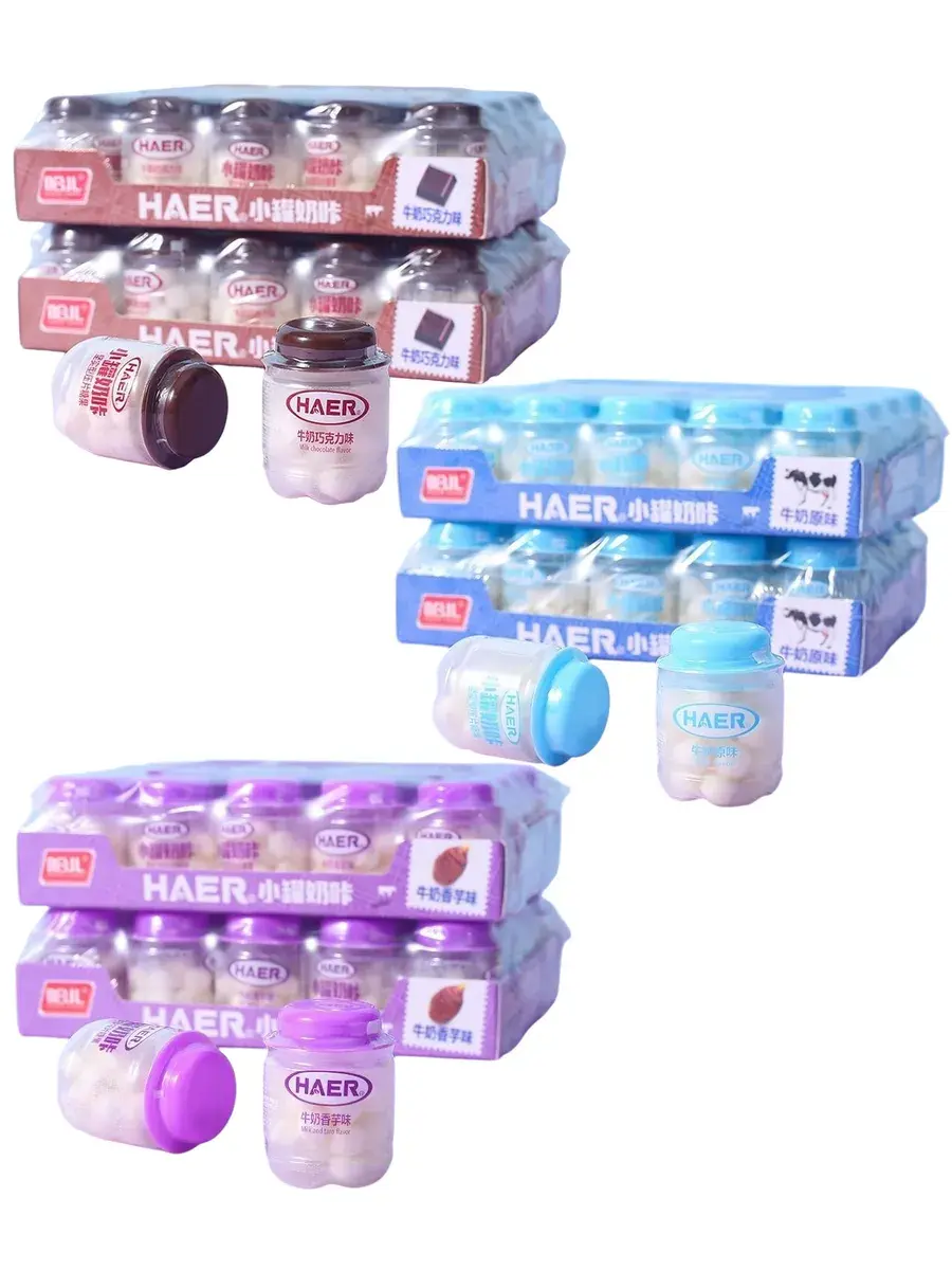 Китайские молочные конфеты-таблетки — вкус, который захочется попробовать снова и снова! В этих маленьких баночках скрывается нечто особенное: мягкий, сливочный вкус с нотками шоколада, таро и классики. Удобный формат в виде таблеток идеально подойдет, чтобы взять с собой или угостить друзей. Идеально для перекуса или небольшого подарка друзьям! Мягкие, тающие во рту конфеты в виде таблеток — это не просто вкус, а особенное ощущение! Нежная текстура, плавно раскрывающая молочные оттенки, словно растекается на языке, оставляя приятное послевкусие. В наборе 3 блока ассорти вкусов, по 20 баночек в каждом.