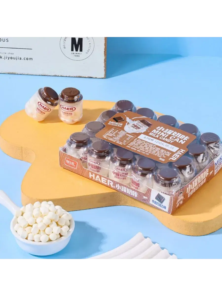 Китайские молочные конфеты-таблетки — вкус, который захочется попробовать снова и снова! В этих маленьких баночках скрывается нечто особенное: мягкий, сливочный вкус с нотками шоколада. Удобный формат в виде таблеток идеально подойдет, чтобы взять с собой или угостить друзей. Идеально для перекуса или небольшого подарка друзьям! Мягкие, тающие во рту конфеты в виде таблеток — это не просто вкус, а особенное ощущение! Нежная текстура, плавно раскрывающая молочные оттенки, словно растекается на языке, оставляя приятное послевкусие. В блоке 20 баночек.