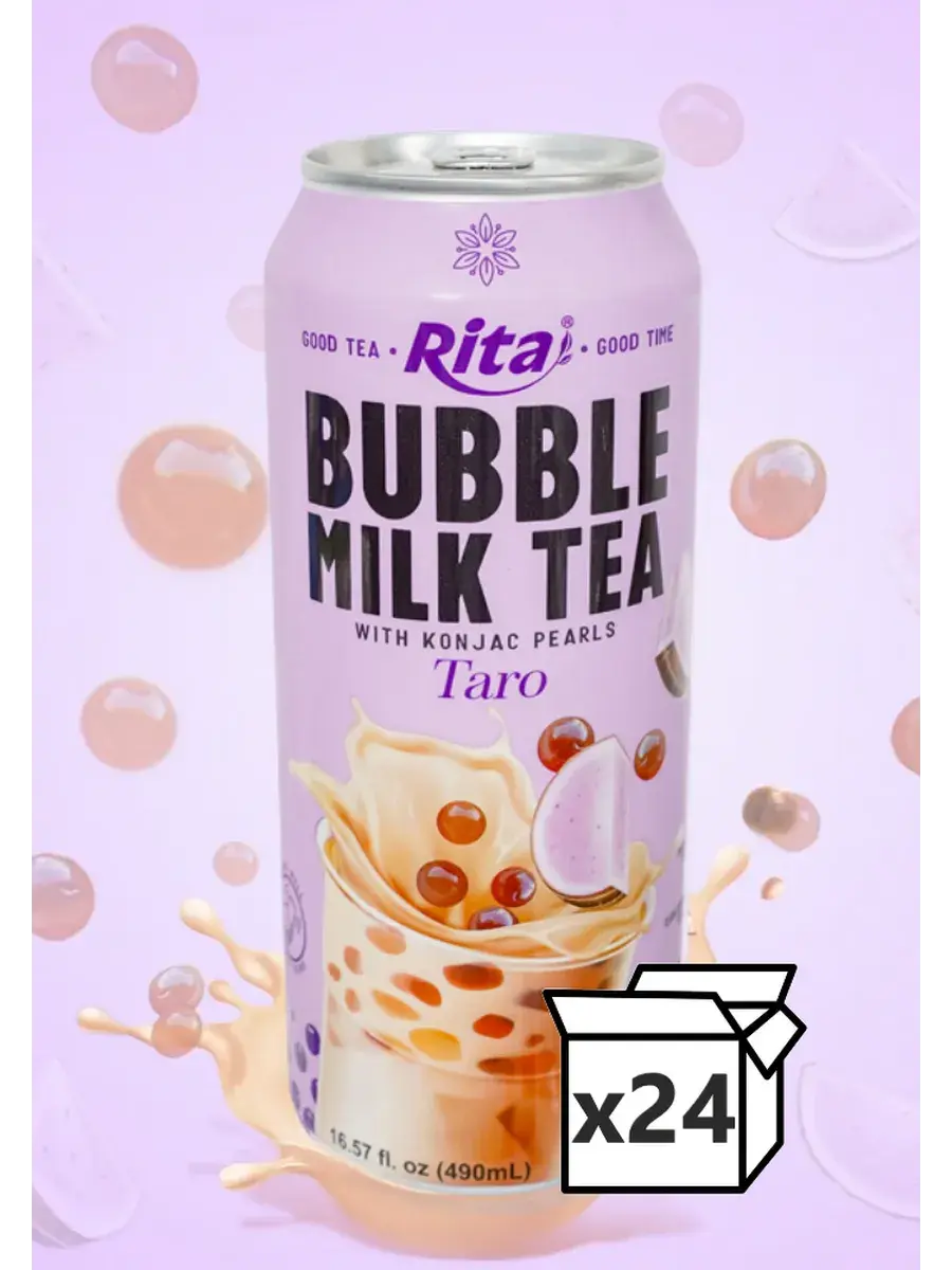 Вкус Bubble Milk Tea Taro создан с использованием настоящих листьев черного чая, немолочных сливок и сухого цельного молока, чтобы обеспечить по-настоящему восхитительный и освежающий напиток. Добавление жемчужин конжака и аромат таро еще больше усиливает удовольствие от этого напитка. Конжак является альтернативой тапиоки, он менее калорийный и более полезный. Благодаря своей густой, кремовой и гладкой текстуре это идеальный выбор для тех, кто хочет насладиться послеобеденным чаем или насладиться вкусным напитком в любое время. Жемчужины удивительно упругие, напоминают шарики тапиоки. В коробке 24 банки по 490мл.