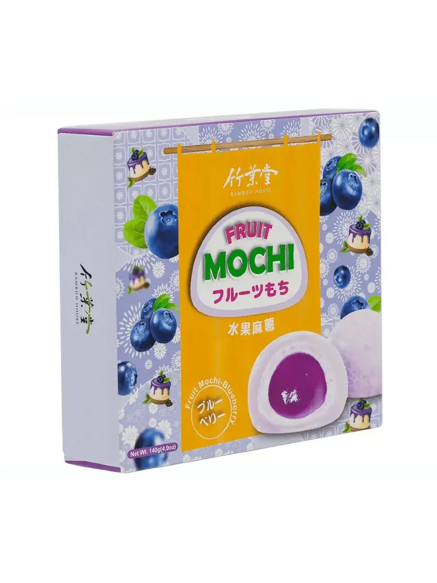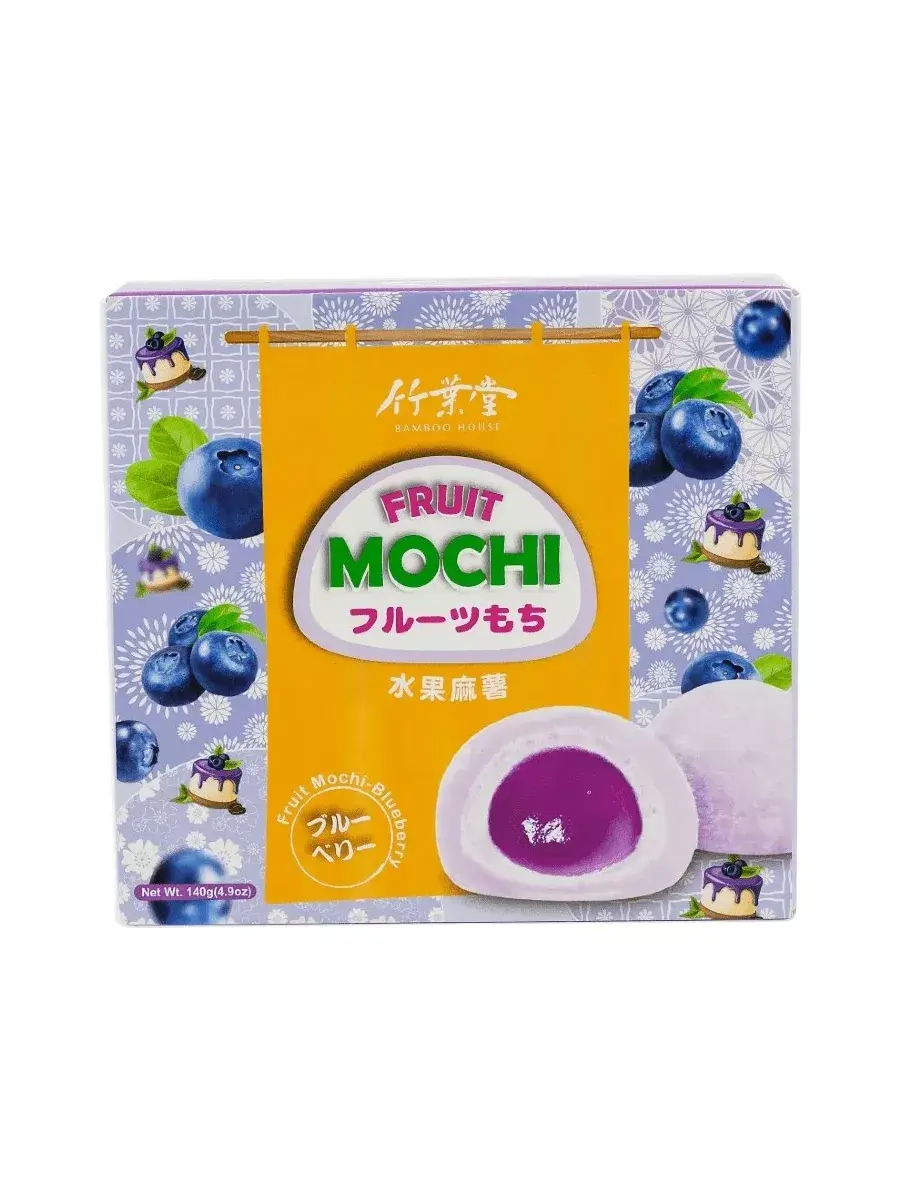 Традиционный десерт азиатских стран - рисовое пирожное моти. Пирожные из рисовой муки с начинкой внутри, в Японии являются символом Нового Года и приходить без них в гости считается невежливо. Моти упакованы в яркие красочные коробки, которые смело можно подарить родным и близким. Десерт по текстуре мягкий и нежный. Производители рекомендуют положить моти на 2-3 часа в холодильник перед тем как есть - вкус станет насыщенней, а текстура будет напоминать мороженое. Моти со вкусом голубики сделаны из трех слоев: центральная часть представляет собой желейный сироп яркого ягодного вкуса, затем сливочная прослойка и наконец последний слой рисового теста. Продукт полностью готов к употреблению, отлично подходят для чаепития. В комплекте 1 упаковка. весом 140г, в которой 4шт пирожных моти.
