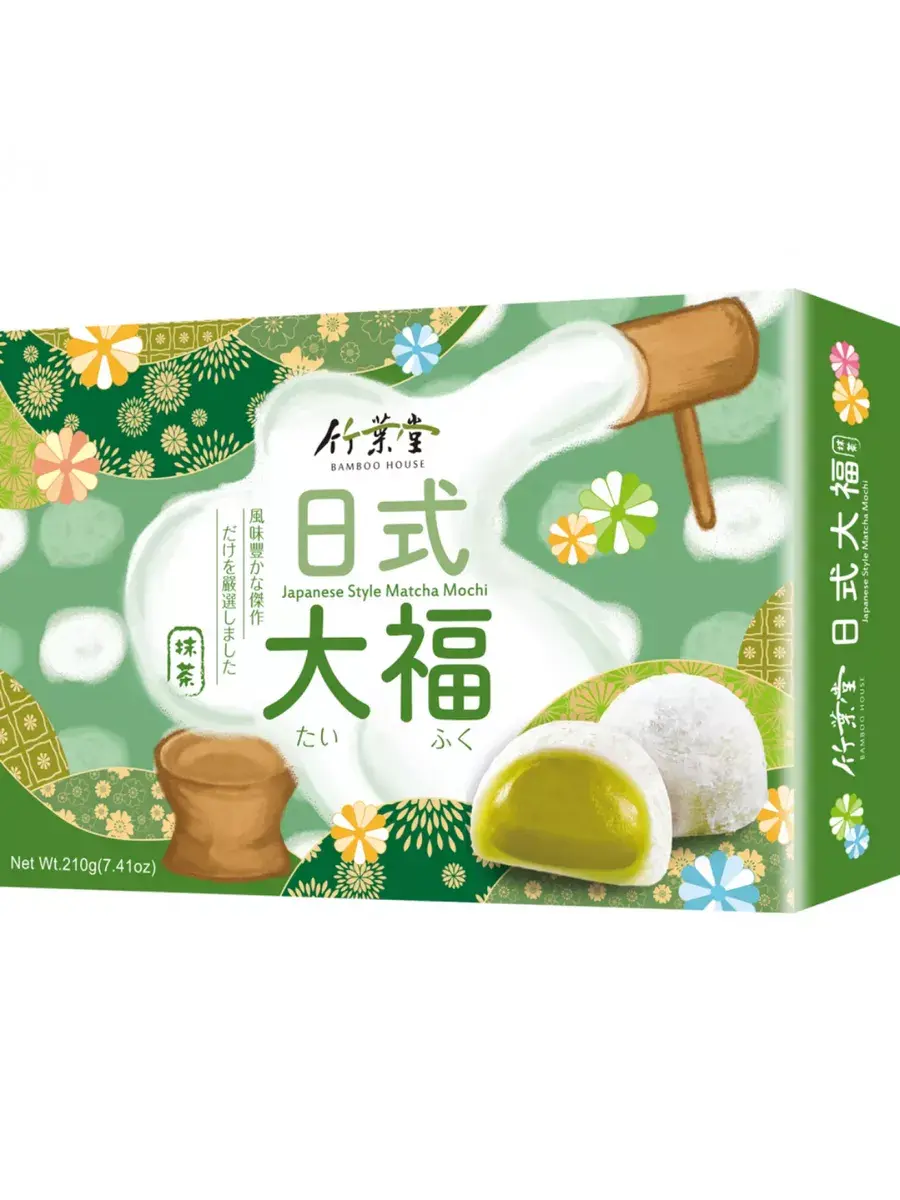 Традиционный десерт азиатских стран - рисовое пирожное моти. Самым популярным в Китае среди моти и, пожалуй, самым вкусным, считается моти с зеленым чаем матча. Это одна из самых популярных в Азии вкусовых добавок, так как она не только вкусна, но и полезна. В порошковом зелёном чае содержится много природных антиоксидантов, которые помогают клеткам бороться с преждевременным старением и усиливают сопротивляемость организма различным заболеваниям. Рисовые пирожные упакованы в яркую красочную коробку, которую смело можно подарить родным и близким. Десерт по текстуре мягкий и нежный. Продукт полностью готов к употреблению, отлично подходят для чаепития. В комплекте 1 упаковка. весом 210г, в которой 6шт пирожных моти.