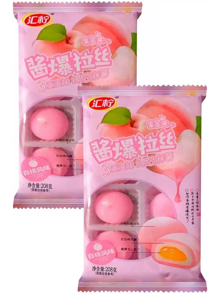 В комплекте 2 упаковки по 208г со вкусом персика. В каждом лотке 8 штук моти.