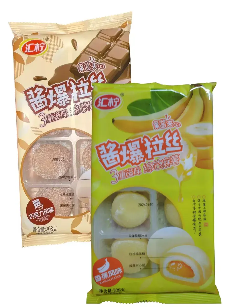 Рисовое пирожное моти с нежной шоколадной и банановой начинкой - это истинное удовольствие для всех, кто ценит утонченные вкусовые сочетания и традиционные азиатские сладости. Идеальное сочетание нежного рисового теста и насыщенного крема, которое подарит вам минуты блаженства и удовольствие. При первом прикосновении клейкое рисовое тесто обнимает вас, словно ласкающий ветер весеннего утра. Но настоящее волшебство начинается, когда вы достигаете сердца пирожного. Нежная начинка из шоколада или банана раскрывается, заливая ваше воображение ароматом и сладостью. В комплекте 2 пачки ассорти вкусов по 208г. В каждой пачке по 8шт моти.