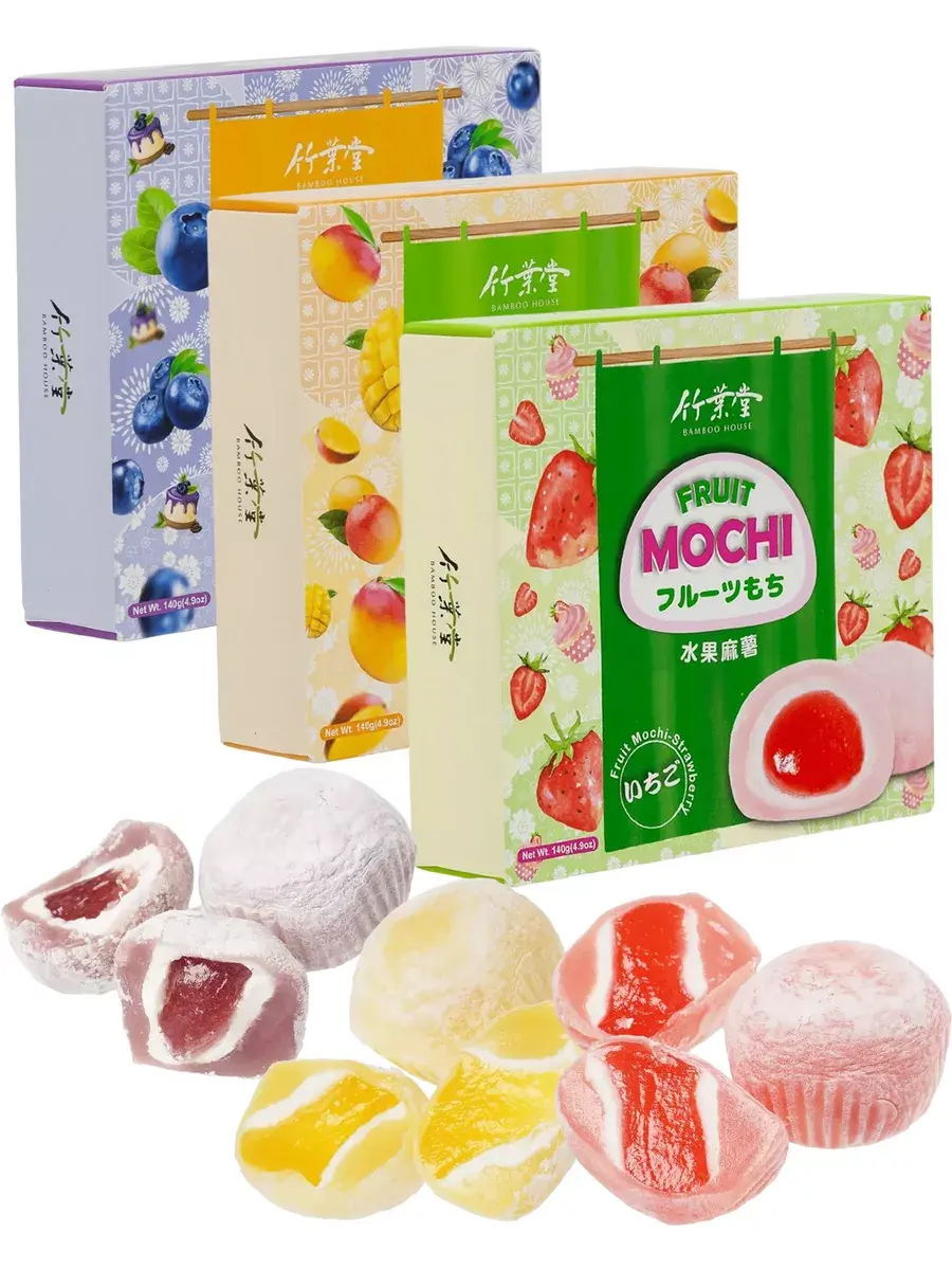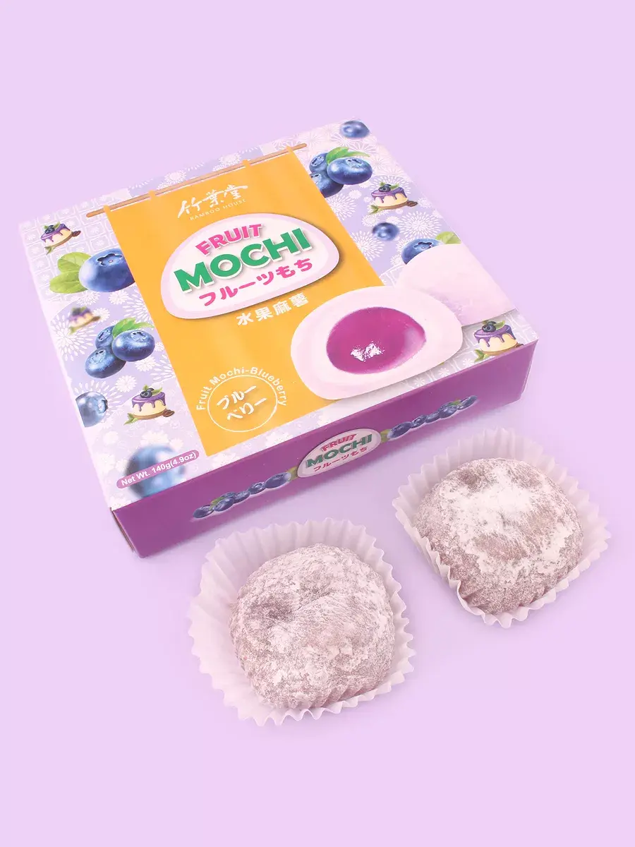 Традиционный десерт азиатских стран - рисовое пирожное моти. Пирожные из рисовой муки с начинкой внутри, в Японии являются символом Нового Года и приходить без них в гости считается невежливо. Моти упакованы в яркие красочные коробки, которые смело можно подарить родным и близким. Десерт по текстуре мягкий и нежный. Производители рекомендуют положить моти на 2-3 часа в холодильник перед тем как есть - вкус станет насыщенней, а текстура будет напоминать мороженое. Моти со вкусом голубики сделаны из трех слоев: центральная часть представляет собой желейный сироп яркого ягодного вкуса, затем сливочная прослойка и наконец последний слой рисового теста. Продукт полностью готов к употреблению, отлично подходят для чаепития. В комплекте 3 упаковка по 140г ассорти вкусов, в каждой по 4шт пирожных моти.