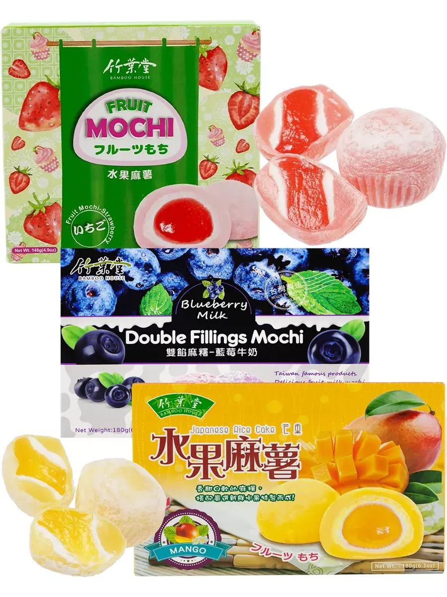 Любителям фруктовых десертов посвящается! Представляем ващему вниманию ассорти рисовых пирожных моти со вкусом клубники, черники и манго. В данном наборе собраны 3 разных вида и 3 разных вкуса моти от Bamboo House. Это не просто пирожное, это настоящий символ японской культуры, сочетающий в себе свежесть и сладость, а также неповторимый вкус клубники. В основе этого продукта лежит рисовая мука, которая придает пирожному особую нежность и текстуру. С каждым кусочком моти Вы сможете насладиться гармонией идеального сочетания ингредиентов. Благодаря своим превосходным вкусовым качествам и уникальному составу, моти станет идеальным дополнением к любому чаепитию, как в качестве самостоятельного десерта, так и в качестве приятного подарка.