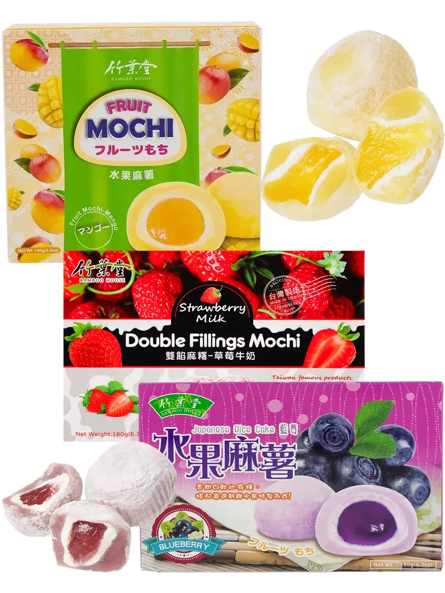 Любителям фруктовых десертов посвящается! Представляем ващему вниманию ассорти рисовых пирожных моти со вкусом клубники, черники и манго. В данном наборе собраны 3 разных вида и 3 разных вкуса моти от Bamboo House. Это не просто пирожное, это настоящий символ японской культуры, сочетающий в себе свежесть и сладость, а также неповторимый вкус клубники. В основе этого продукта лежит рисовая мука, которая придает пирожному особую нежность и текстуру. С каждым кусочком моти Вы сможете насладиться гармонией идеального сочетания ингредиентов. Благодаря своим превосходным вкусовым качествам и уникальному составу, моти станет идеальным дополнением к любому чаепитию, как в качестве самостоятельного десерта, так и в качестве приятного подарка.