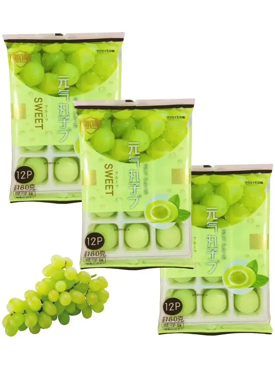 Пирожное Моти (Мочи) - это японское традиционное лакомство из рисового теста с начинкой внутри. Этот десерт отличается необычным вкусом и текстурой, благодаря мягкой консистенции рисовой основы и сочному фруктовому наполнителю. Азиатский десерт моти имеет очень интересный вкус, который должен попробовать каждый! Многие выбирают эти вкусности вместо обычных сладостей, поскольку моти считаются более низкокалорийными и идеальны для людей, следящих за своим питанием. В каждой упаковке 12 штук моти. В коробке 3 индивидуальные упаковки с виноградным вкусом.