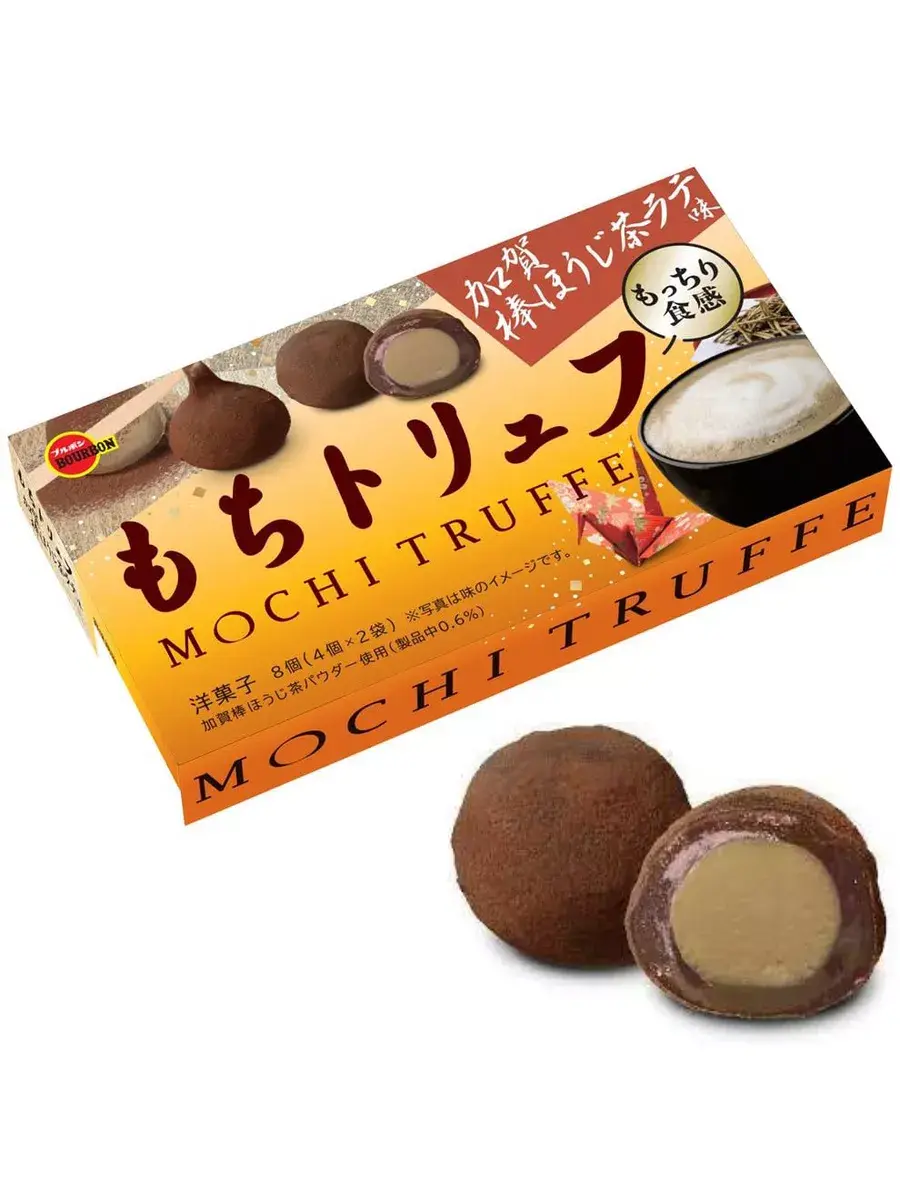 Попробуйте необычный вкус — моти трюфель со вкусом латте, с начинкой из порошка ходзича. Изюминка пирожных Bourbon в том, что они гармонично сочетают в себе европейский и японский вкус. Не слишком специфические, но интересные и позволяют познакомиться с настоящим вкусом моти. Это лакомство имеет идеальный баланс чая, латте и шоколада. В упаковке рисовые пирожные разделены на 2 отдельных блока по 4 моти в каждом, для сохранения свежести и аромата. Баловать себя японскими пирожными, необходимо деревянной палочкой, она прилагается в комплекте.