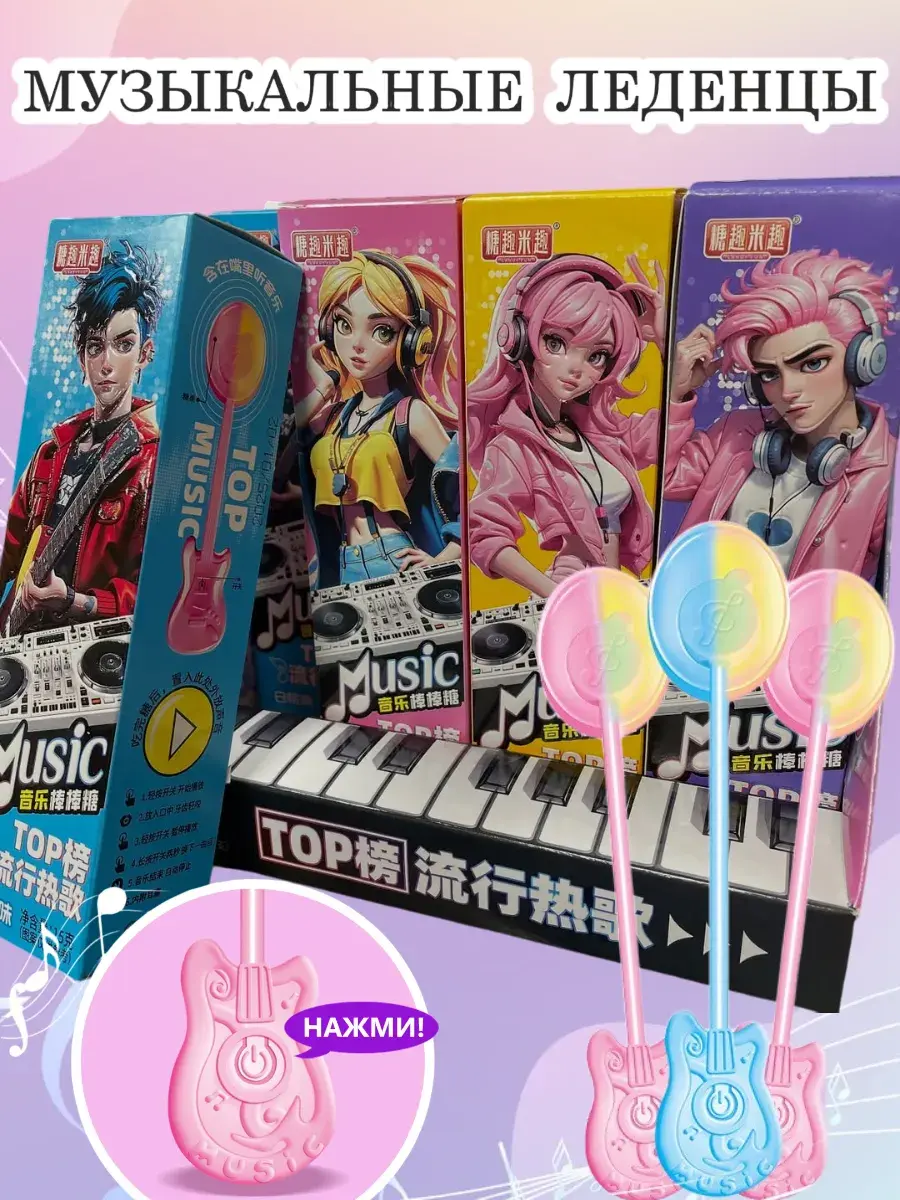 Музыкальные леденцы на палочке — это нечто совершенно новое и захватывающее. Каждая конфетка , аналогично наушникам, передает звук через вибрации. Попробовав ее, вы почувствуете, как мелодия проникает в сердце. 1. Нажмите переключатель (на гитаре) чтобы начать воспроизведение. 2. Положите в рот и осторожно разжуйте. 3. Нажмите переключатель, чтобы приостановить воспроизведение. 4. Нажмите и удерживайте переключатель в течение двух секунд, чтобы перейти к следующему треку. 5. Автоматически останавливаться, когда музыка заканчивается. 6. В комплект входят беруши. Почему это нужно попробовать: Это уникальный подарок, от которого будут в восторге дети и взрослые. Это новые ощущения, которых вы никогда не испытывали. Это музыка, которую можно буквально "попробовать на вкус".